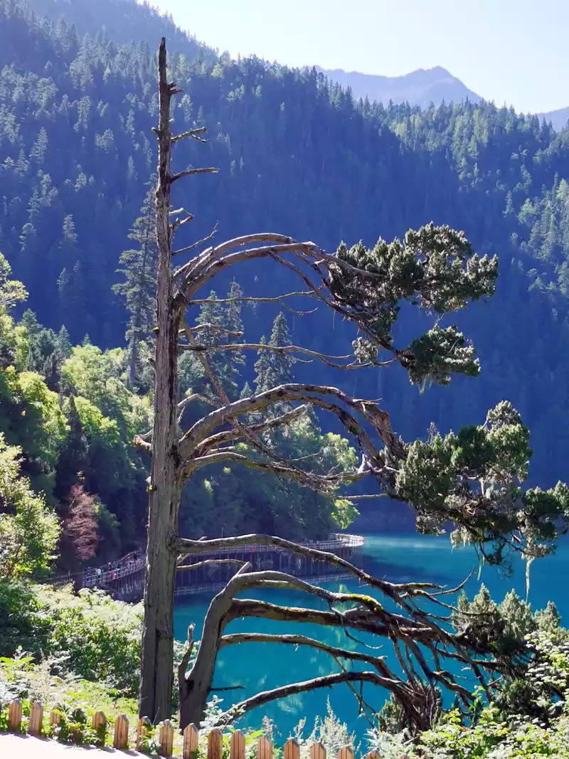 We were the first to arrive at "Changhai", which is the highest, deepest and largest sea in Jiuzhaigou. "Changhai" has no water outlet, but it never overflows and dries up, and relies on underground gaps to regulate the water in the pool below. The weather was good today, and I took a lot of photos on the observation deck and spent a lot of time in the "Long Sea".