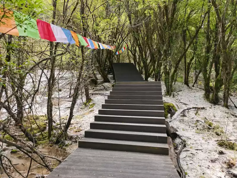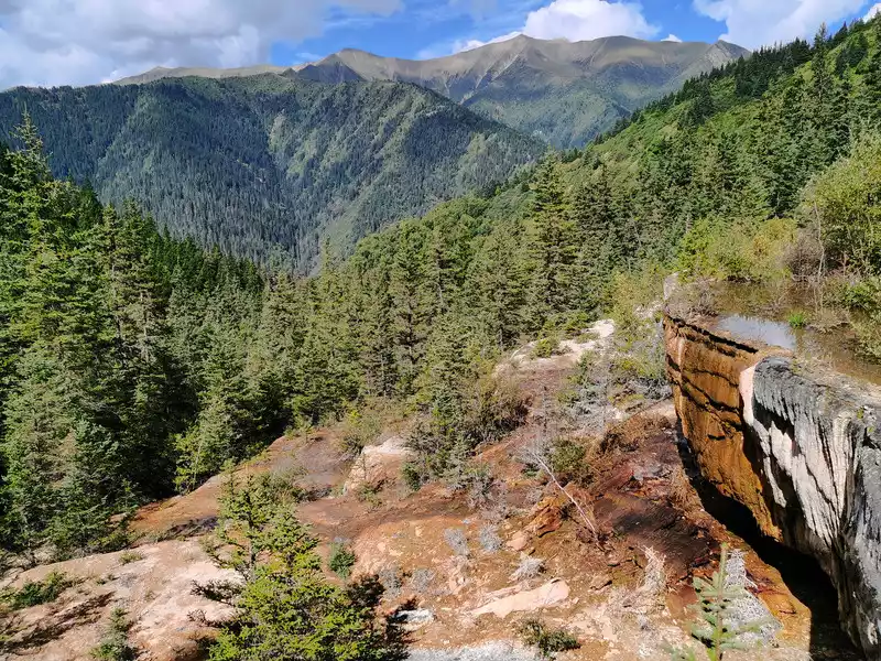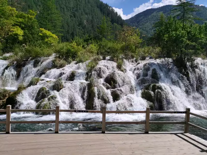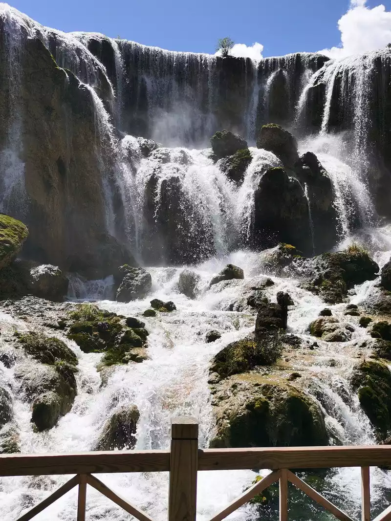 Go up to "Lotus Terrace", which is the highest point of the scenic spot, with an altitude of 3070 meters. When the water is big, you can see the waterfall landscape, but now the water is small, and it means that you are standing at the highest point of the scenic spot.