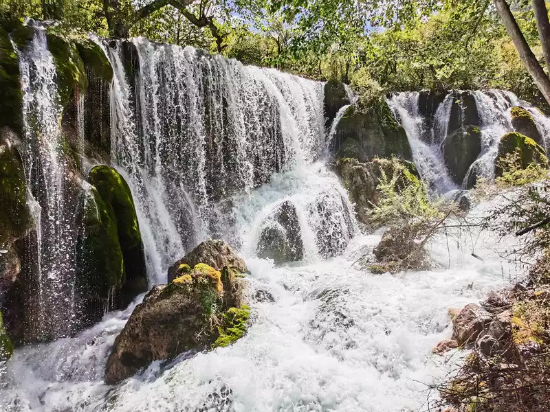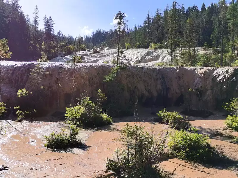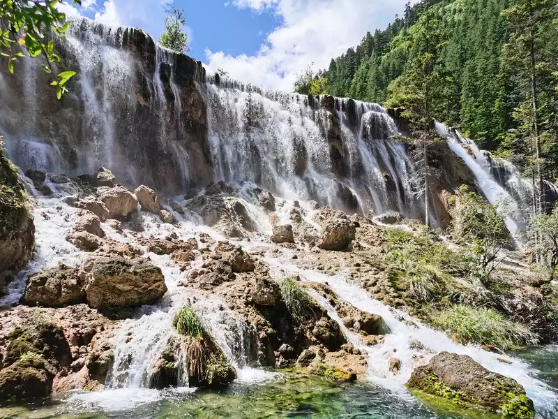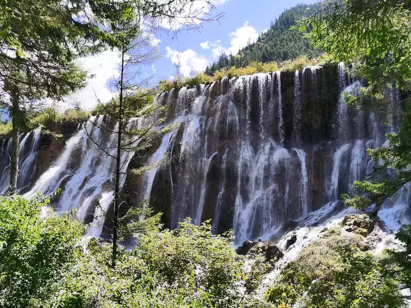"Pearl Falls" is 21 meters high and 270 meters wide, and is a moraine platform left of Quaternary glaciers that has been calcified.