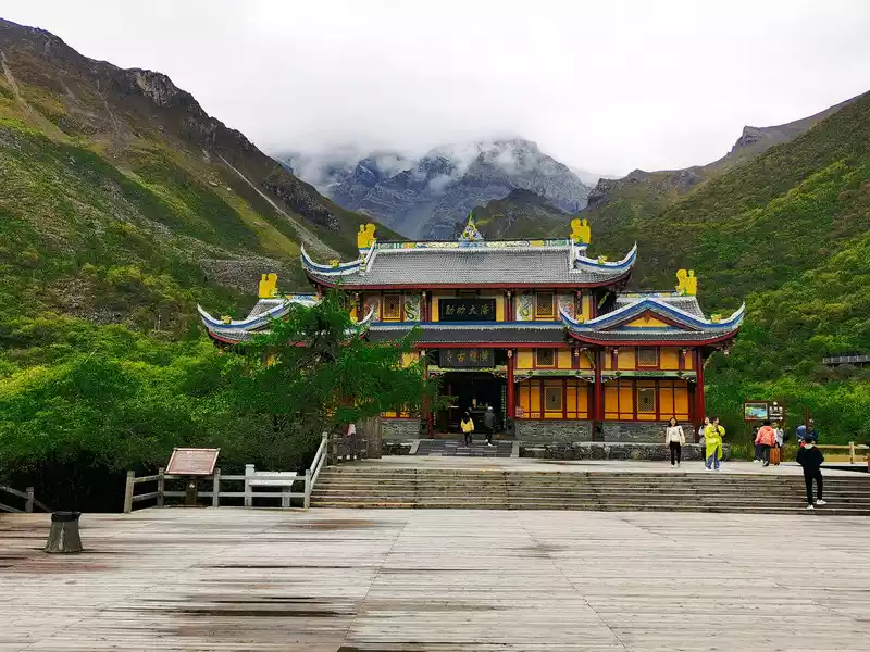 Go to the innermost end and look back at the "Huanglong Ancient Temple" and the ditch below.