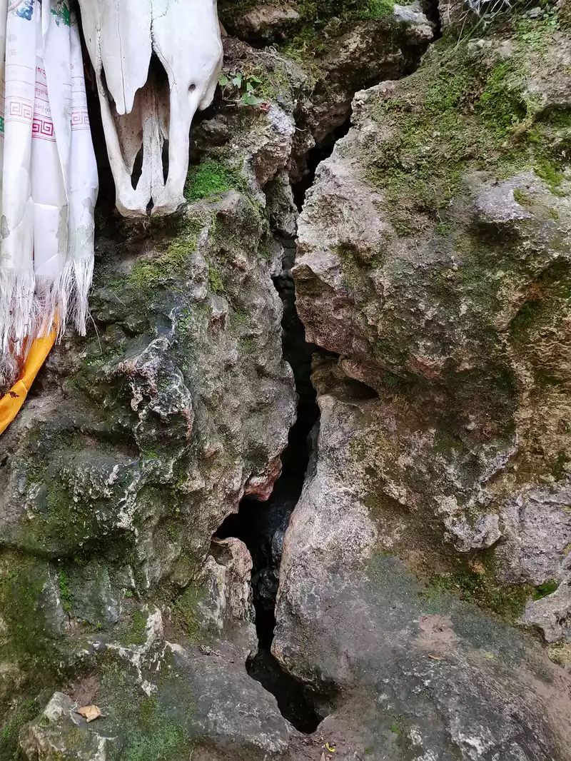 I didn't expect that it was just such a narrow crack in the stone, and it was difficult for my fist to reach in, so I could only touch the hole with my palm to get some blessings.
