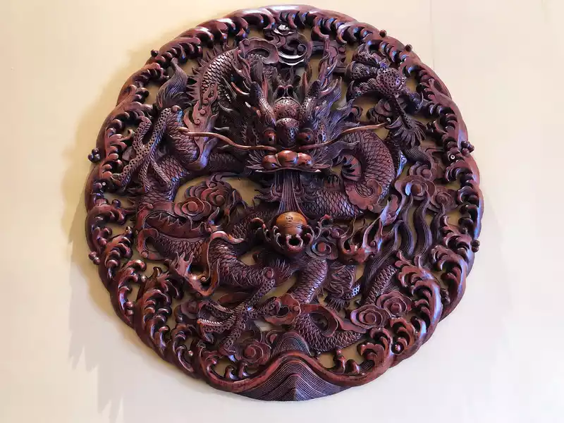 architectural decoration in the main hall is the most beautiful and brilliant of all the temples I have been to, and the gorgeous and exquisite beauty has never been seen in other temples. I surrounded the hall from low to high by myself, admiring every exquisite object in the hall under the dim light.