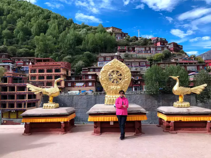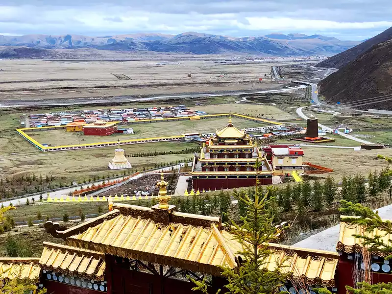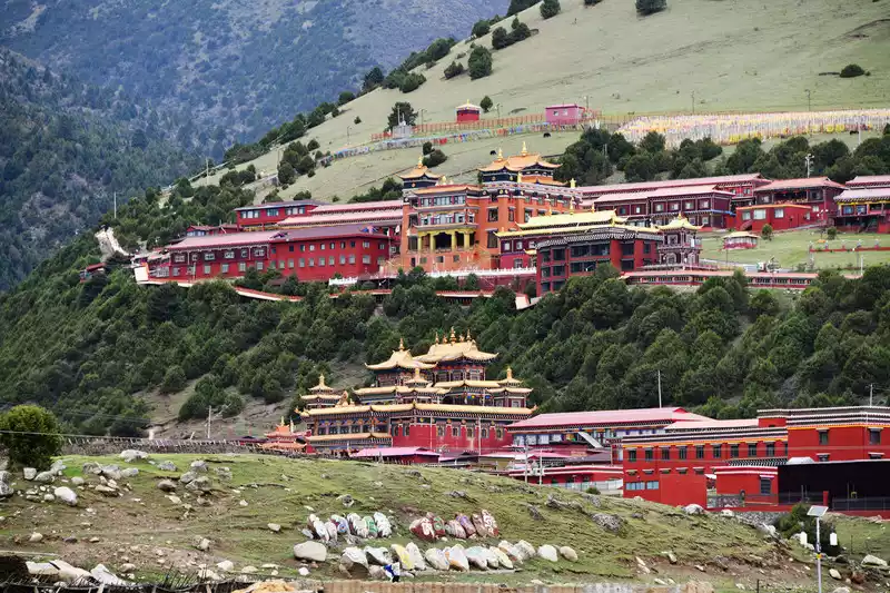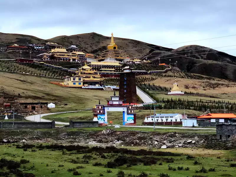 On the way, we passed a large-scale temple building, built on the mountain, with red walls and golden roofs, which was extraordinary. I only know that this place belongs to Ganzi Autonomous Prefecture, but I don't know what this place is? What kind of temple is it?