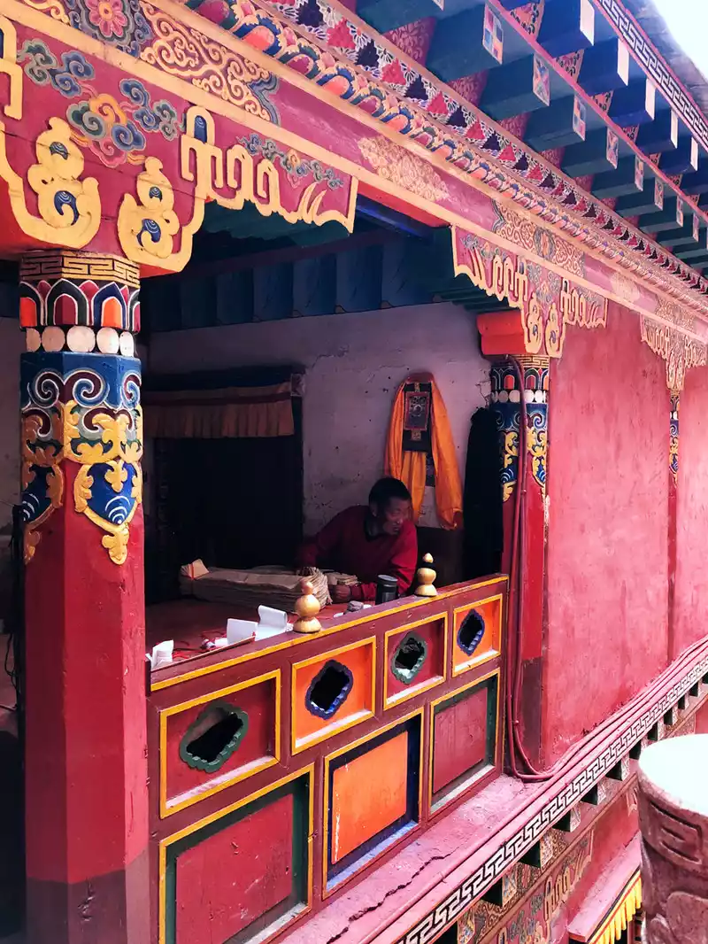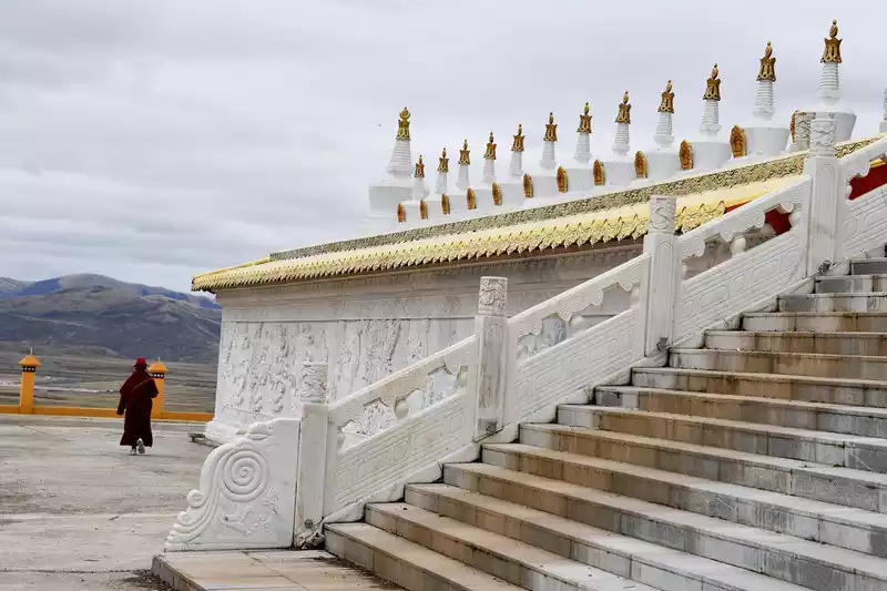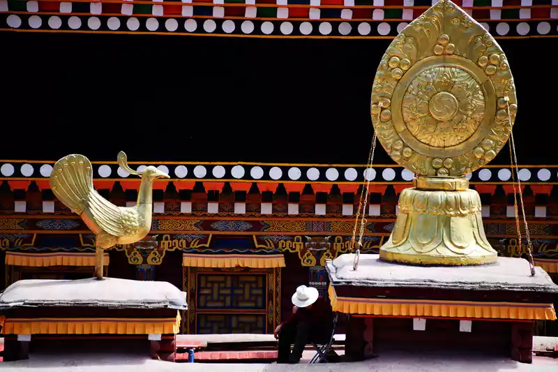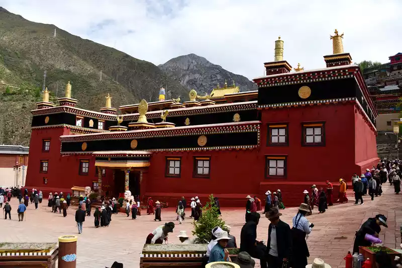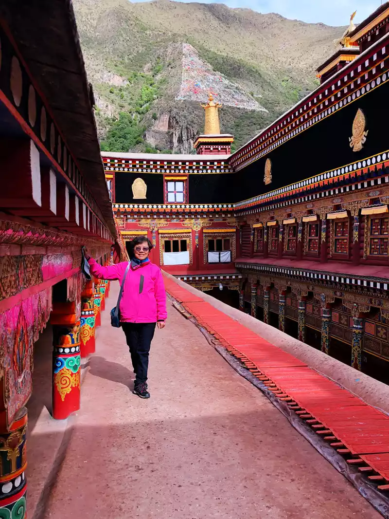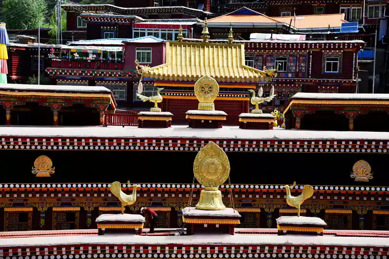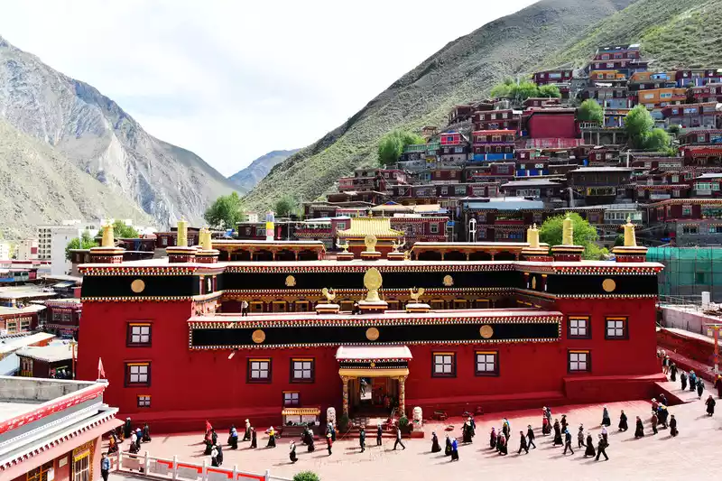Gaze at the cinnabar red building from a high place in the distance, and the golden roof of the building shines in the sun. The rows of red houses on the hillside behind the Printing Institute seem to take people to Seda. Perhaps, this is the characteristic of the Tibetan settlement area. The crowd of people transferring scriptures is endless, adding a touch of movement to this mysterious printing house.