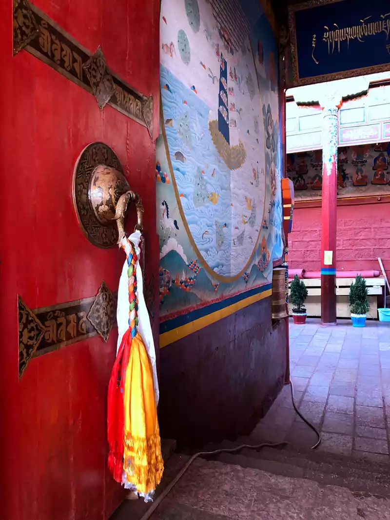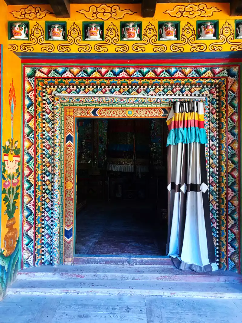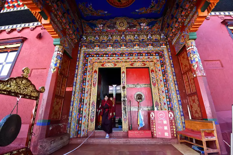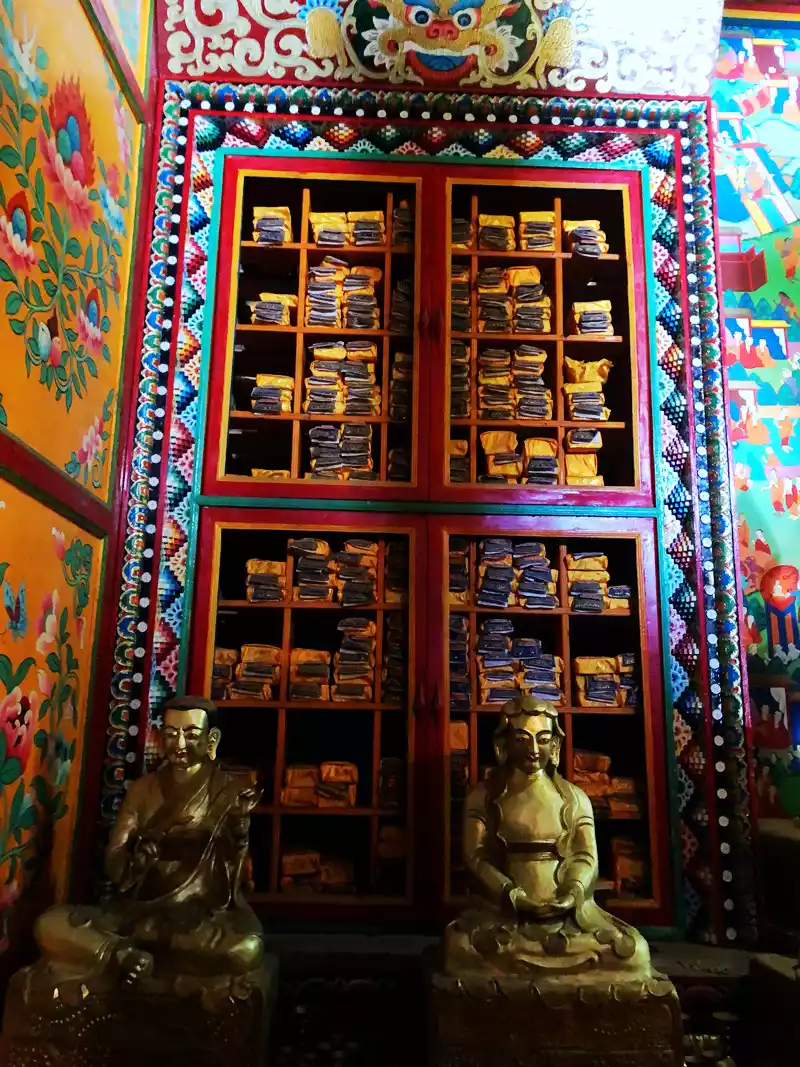 From a distance, the temple is quite large. This temple, built in 1686, is remote, so not many people come to the temple to offer incense. In addition, the Seda Monastery is holding a puja these days, and it is said that they all went to Seda, and they saw a lama in the temple. When I walked to the gate of the temple, I saw that the temple was unusually quiet, and only one place where the rain leaked made the sound of ticking water. After asking the lama for permission, I quietly walked in. An abnormal sense of tranquility and detachment suddenly appeared in my heart, and the distracting thoughts in my heart were swept away, and I couldn't help but put my hands together in front of my chest.