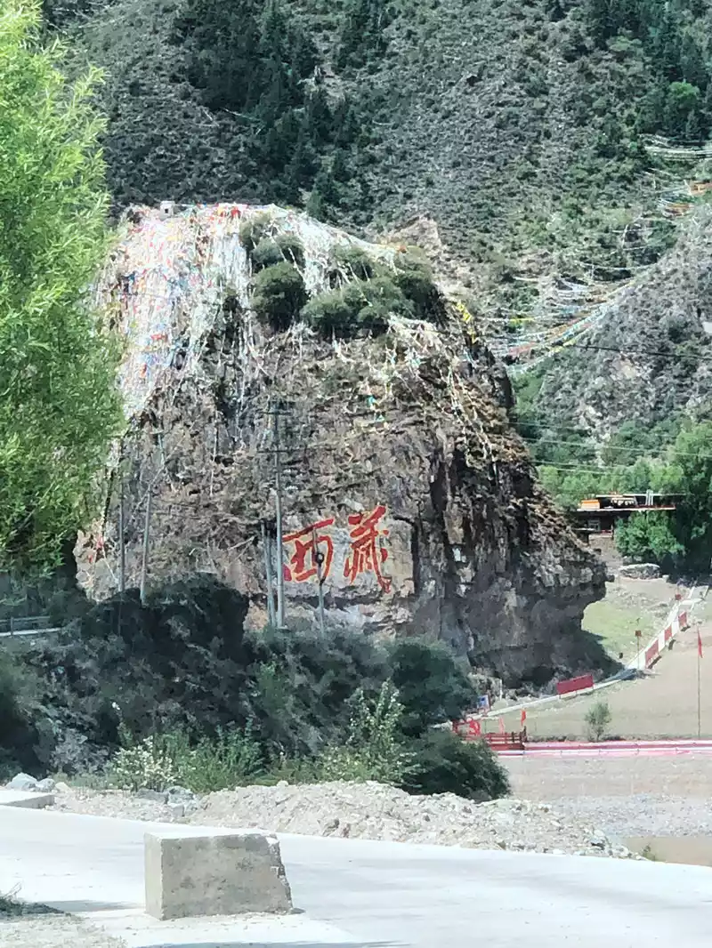 about 12 noon, we crossed the Jinsha River Bridge through the tunnel, and we left Sichuan and entered Jiangda, Tibet. A large stone engraved with the word Tibet stands next to the tunnel entrance in Sichuan. Goodbye, Sichuan!