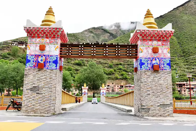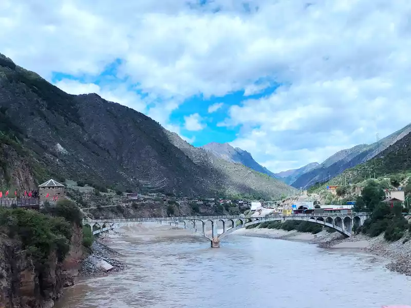 The Jinsha River is the natural dividing line between Sichuan and Tibet, and the G317 Jinsha River Bridge on the Sichuan-Tibet North Line is an important passage connecting Sichuan and Tibet. It is connected to Ganzi Dege County in Sichuan to the east and Jiangda County in Changdu Tibet to the west. This is the throat fortress from Sichuan to Tibet. When the car drove on the bridge, I saw a big special billboard in front of me from a distance, "Tibet Main Gate Jiangda Welcomes You", the word "door" was deliberately written in a big way, a little funny, as if entering Tibet from other places was not going through the main gate. We came to Gangtuo Village, the gateway to eastern Tibet, known as the "First Village of Tibet Liberation".