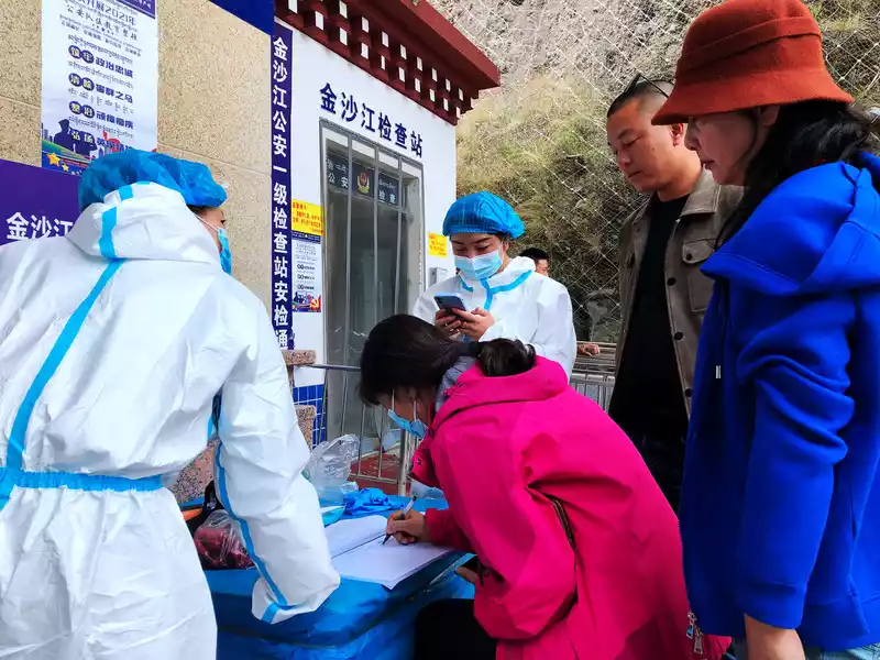 After crossing the Jinsha River Bridge, there was the Jinsha River checkpoint on the Tibetan side, and the three of us from Guangdong were seriously asked to register and take pictures. Pass big data + ID card + nucleic acid test report. Fortunately, nucleic acid was done in Chengdu on the 21st, and the report was received on the 22nd, and there are still 3 days left before it is valid within 7 days. It seems that nucleic acid testing will be done again before entering Lhasa, and Lhasa requires nucleic acid testing to be valid within three days.