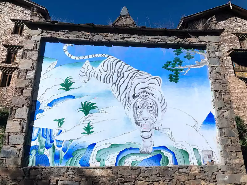 Climb a stone staircase and come to the gate of the official village, which is a distinctive gate, and a screen with a tiger painted on it is located behind the gate. Here's a legend. It is said that when the construction of the first Zhuokeji Tusi official village was about to be completed, it came down from the mountain and kept a tiger, and it lay and sat by the gate of the official village for a day and a night, and finally left quietly. Tigers are very rare in the local area. Therefore, in addition to the meaning of the top and supreme meaning, the place name Zhuokeji also has the saying of "hidden dragon and crouching tiger".