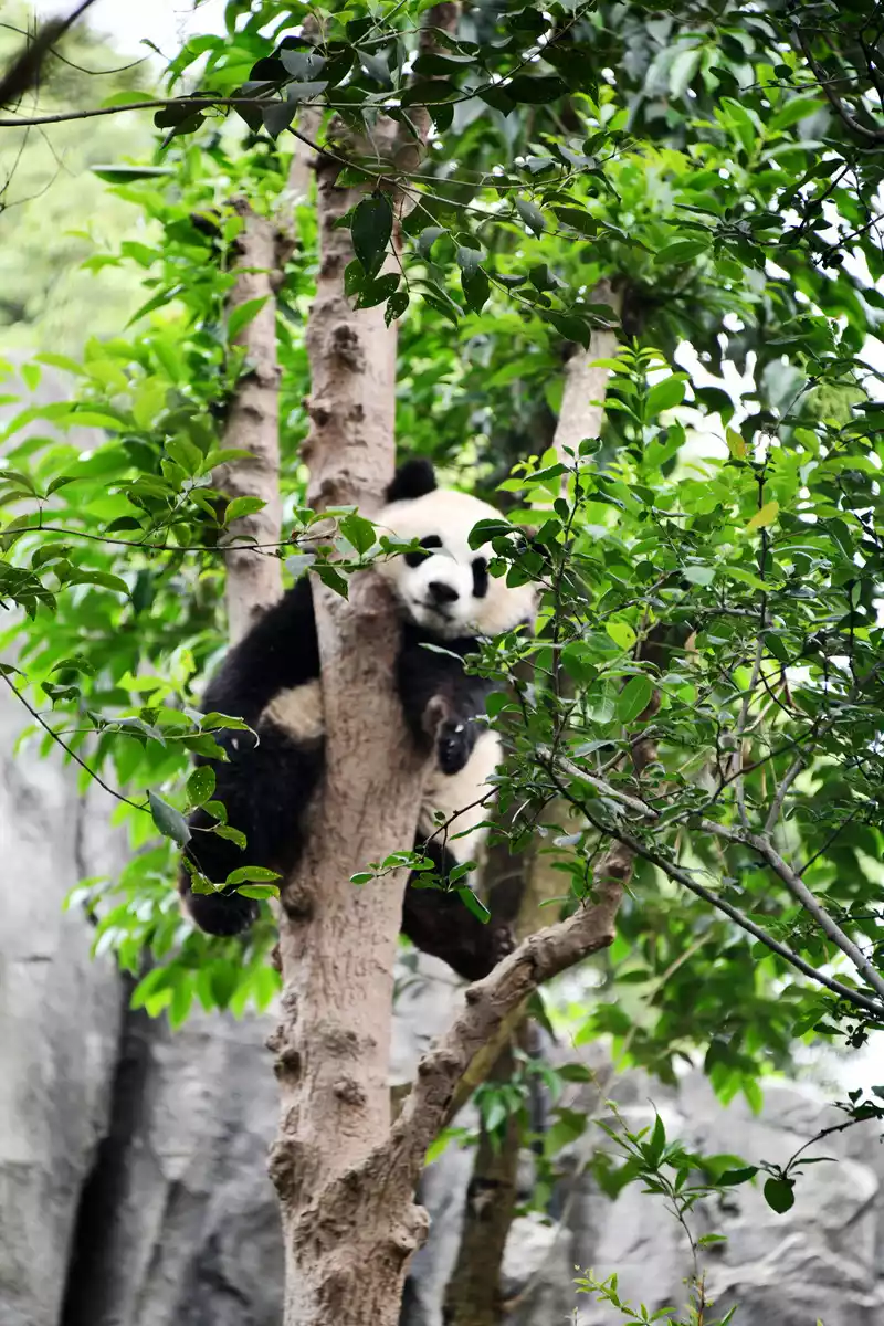 With only half a day in Chengdu, we chose to go to the panda breeding research base. Although I have been to Chengdu many times, it is the first time I have walked into the panda base. The environment here is very good, green bamboo is a forest, and the cute giant pandas live here is really a blessing. Some pandas happily ate bamboo meals by themselves, some climbed trees, and their fat figures did not seem to have any effect on their climbing trees, and some fell asleep. No matter what movements it makes or what sound it makes, its naïve appearance can be loved by people, no wonder it is a national treasure.