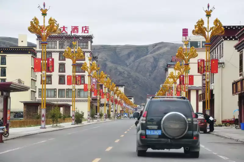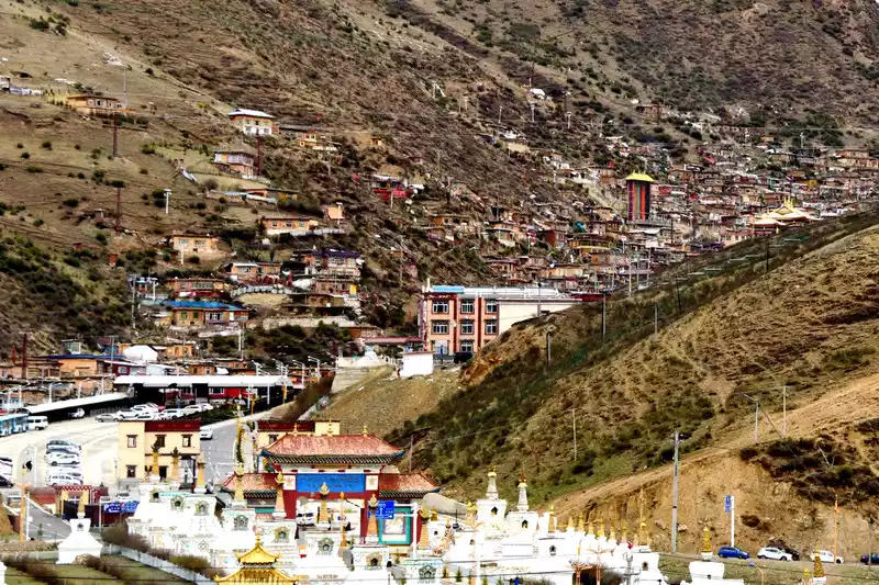 Pass by Seda County, a small modern town that has emerged due to tourism driven by Wuming Buddhist Institute. Because Wuming Buddhist Academy is closed and closed to the public, this once lively small city is now deserted.