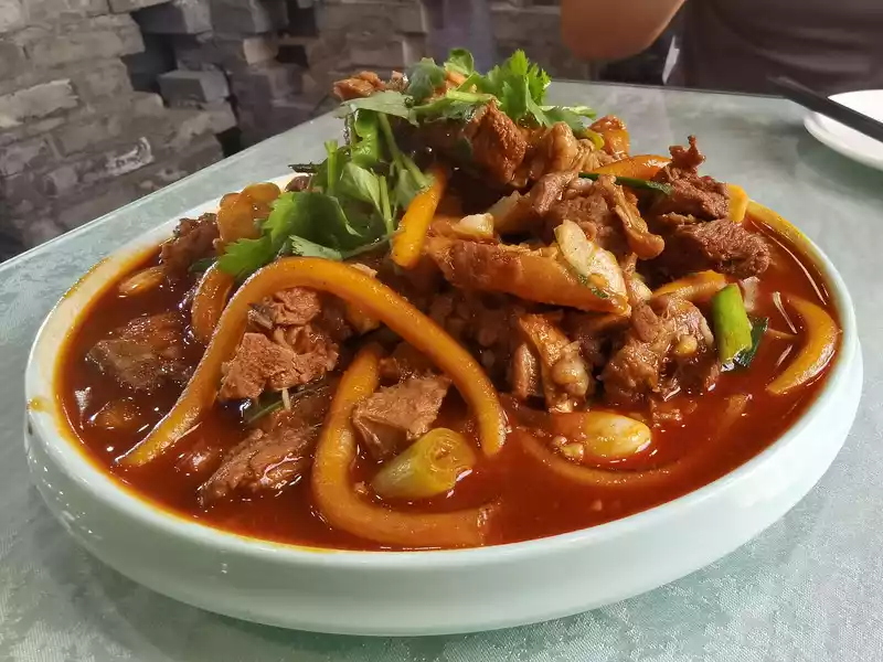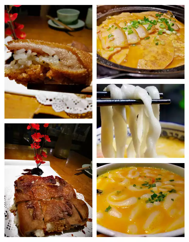 Eating local food is an essential part of your trip. That night, I found a restaurant in a nearby alley - Huifu Courtyard, and a few special dishes were really good: special glutinous rice duck: the upper layer is crispy duck skin, the bottom layer is fragrant pot rice, and the soft glutinous rice is mixed with a few peppercorns in the middle; Braised meat and taro pot: The aroma of meat and taro penetrates perfectly with each other; Handmade tomato gluten, tomato and cucumber soup is fresh enough, and the noodles are chewy enough. Eat to your heart's content, get a good night's sleep, and hit the road tomorrow.