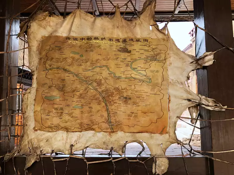 As soon as you walk through the gate, you will see a sheepskin map depicting the ruins of the legendary Gesar. Gesar represents the highest achievement of ancient Tibetan folk culture, with a complete heritage, a long history, a vast volume, profound and broad, magnificent in scale and rich in content. Although it may not be possible to understand it, I still have a deep curiosity about this ancient Tibetan culture.