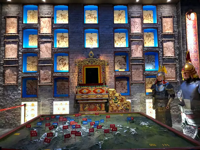 main hall of King Gesar, the most conspicuous architect in the city, is the "Senzhu Dazi Palace" and "Thirty Generals' Village". The most worth seeing is the Royal Palace Museum, which unfortunately no one explains, missing the opportunity to learn more about the legend of King Gesar.