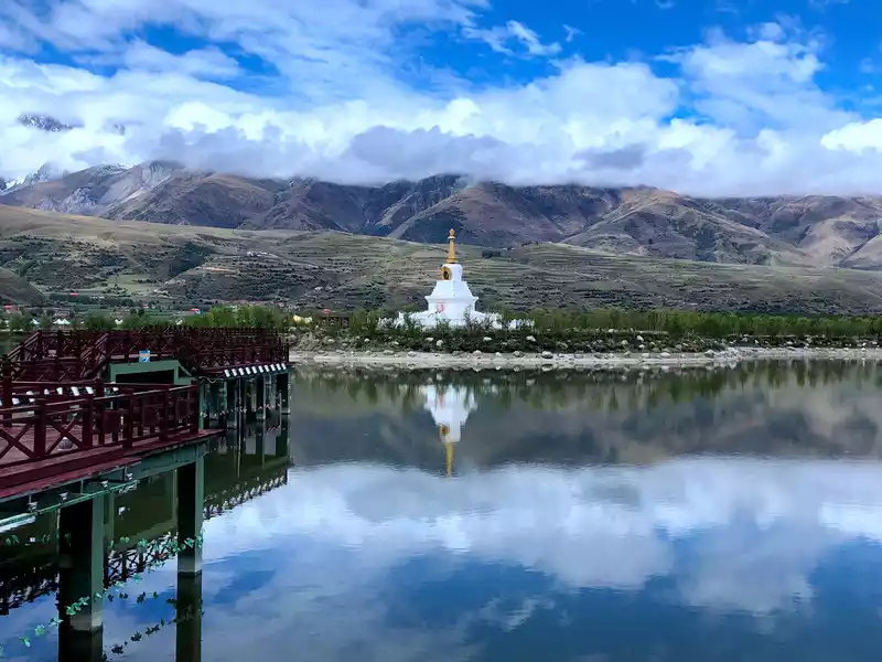 Bona Great Stupa across the river is very similar to the Bodhaha Great Stupa in Nepal. The Buddha's eyes on the pagoda seem to be able to see through all the joys, sorrows, sorrows and sorrows in the world.