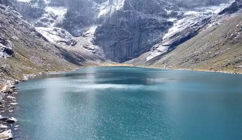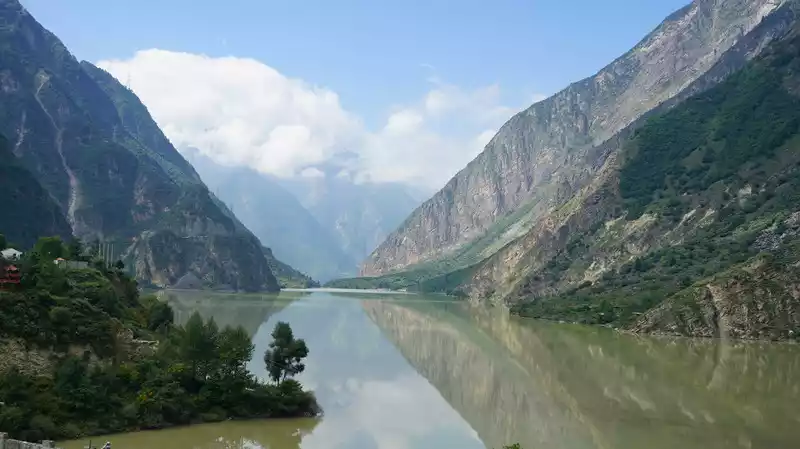 Go down the mountain to Zagaercuo, the lake water is clear and quiet, and behind the lake is the Great Wall of Cliffs like knives and axes, and there is a majestic atmosphere of a solitary mountain.
