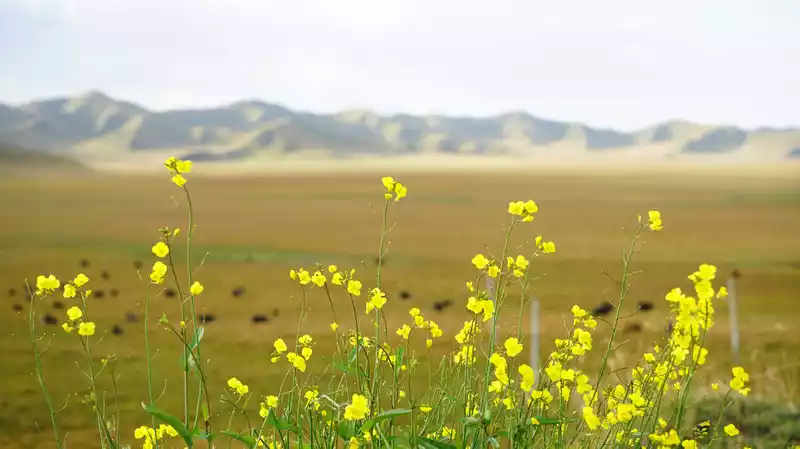Set off early in the morning to Awancang Wetland, the vast grassland is lush with water and grass, cattle and sheep are fat, and the horns are horizontally circular, which is very distinctive.