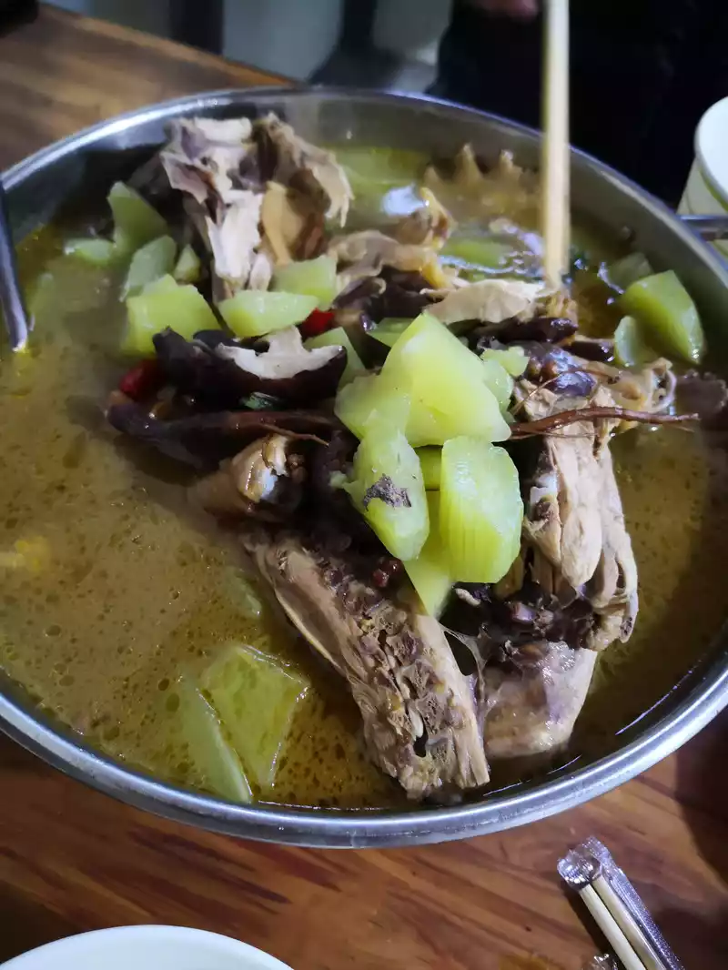 Sichuan restaurant next to the B&B, according to our guidance, served a pot of chicken soup, a whole chicken stewed with mushrooms and lettuce, delicious, beating all the restaurants along the way.