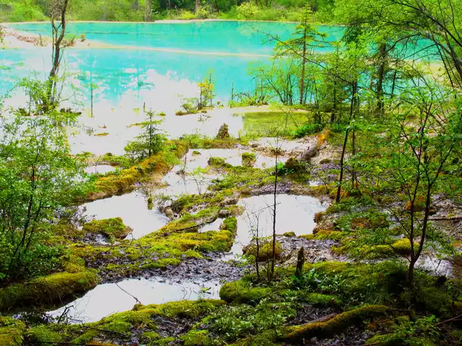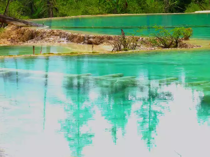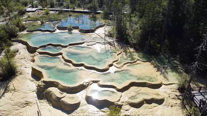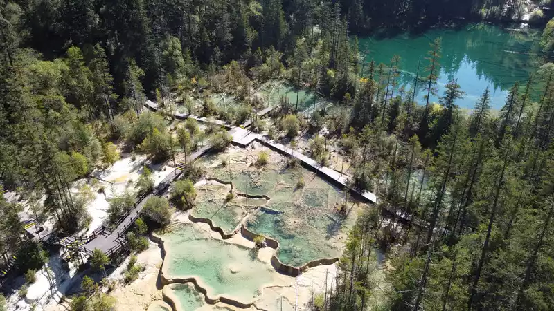 "Nen Sangcuo" means a place where fairies bathe, also known as the fairy pool, which is a wonderland on earth that combines nine villages and yellow dragons. The hillsides are wrapped in yellow and white calcareous, forming pools of different sizes, as well as alpine lakes and primeval forests. The entrance to the scenic spot is up and down the right, and the itinerary is reasonable. There are not many tourists, and we also had lunch at the visitor center, which was reasonable and the environment was elegant.