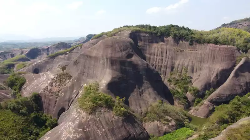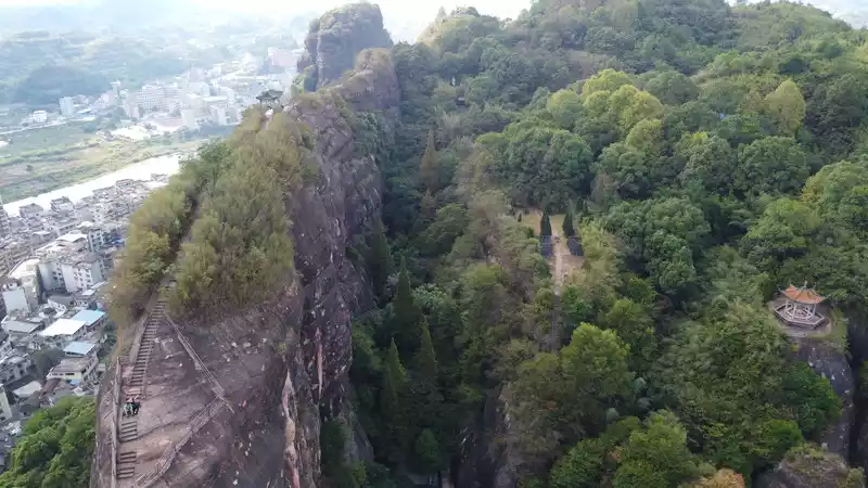 Then enter Guangdong, to Lechang Jinjiling, Jinjiling is a Danxia landform, there is a red sand stone shaped like a golden rooster on the ridge is named after it, along the gate up the steps, You can see the Danxia Cliff Peak. The flat land on the ridge is mostly deep valleys and cliffs, the scenery is dangerous, and there are very few tourists, making it a low-key scenic spot.