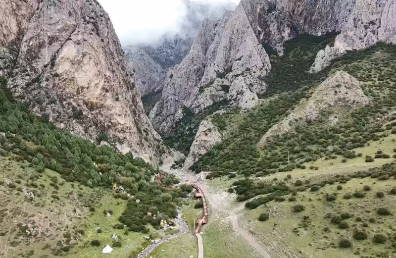 6. Walk through the landscape avenue south to Nenen Sangcuo, which is a tourist attraction integrating Jiuzhai and Huanglong, to Songpan;