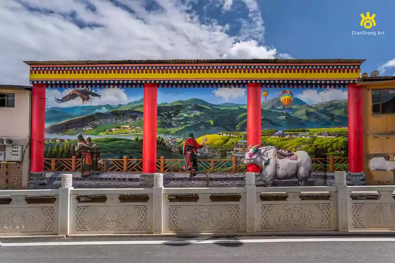 Arrive at Langmusi Town in the evening. At the door of the hotel, you can see the red stone cliff, the mural facing the river is very vivid, the yak is about to come out, and the old man who is shaking the prayer tube with his hands is still fresh in his memory. This mural was not photographed at the time, but when I was watching Douyin, I actually saw the painter, and I dared to make a complete mural, I got it, so happy!