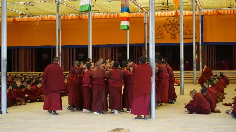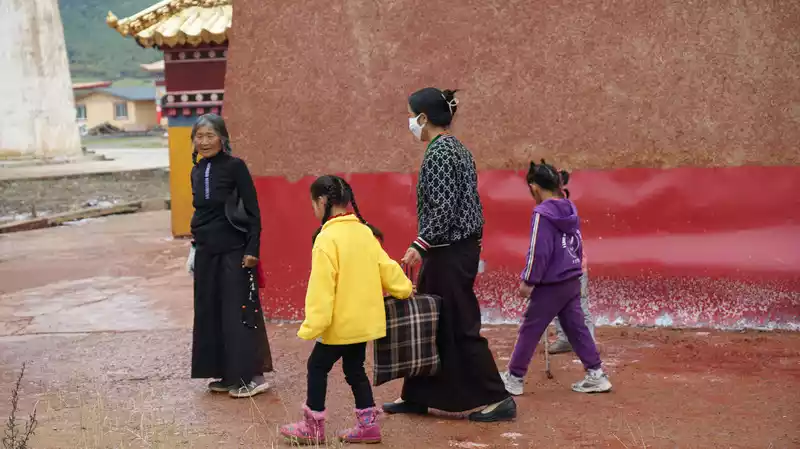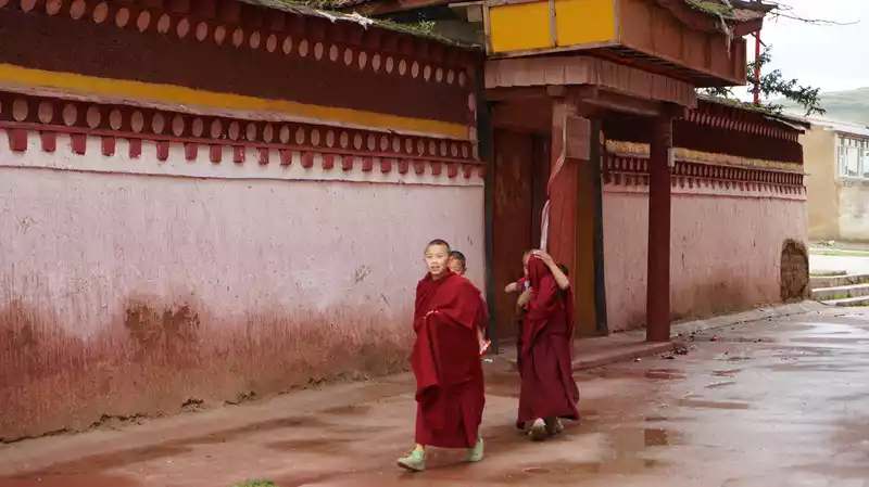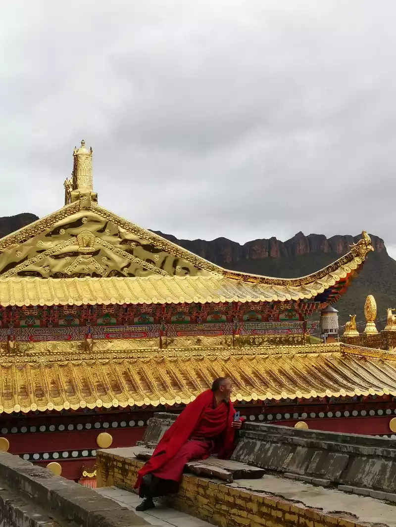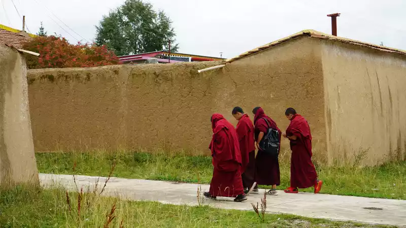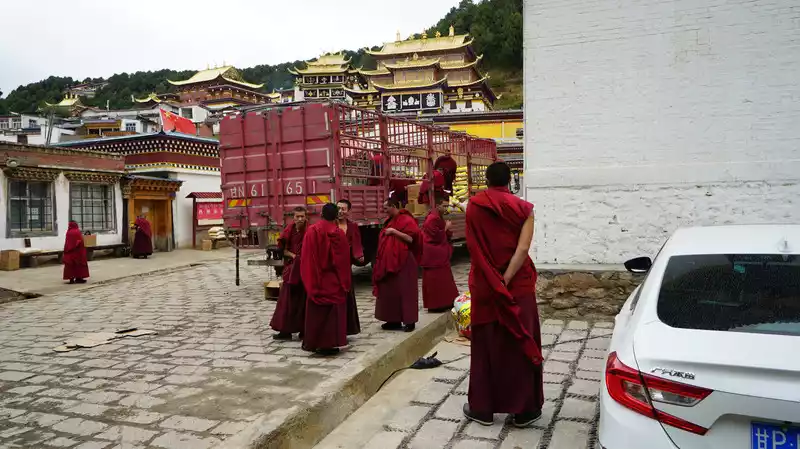 I want to go to Lianbaoyeze, the weather is bad, and I continue to wait in Aba County. Gelden Monastery is the largest Tibetan Buddhist Gelug monastery in Aba County. The monks who entered the monastery were studying the scriptures, and a group of more than 20 people echoed loudly, although they could not understand, they still felt the serious attitude, and several believers gathered around with their luggage reverently, either worshipping or sitting.