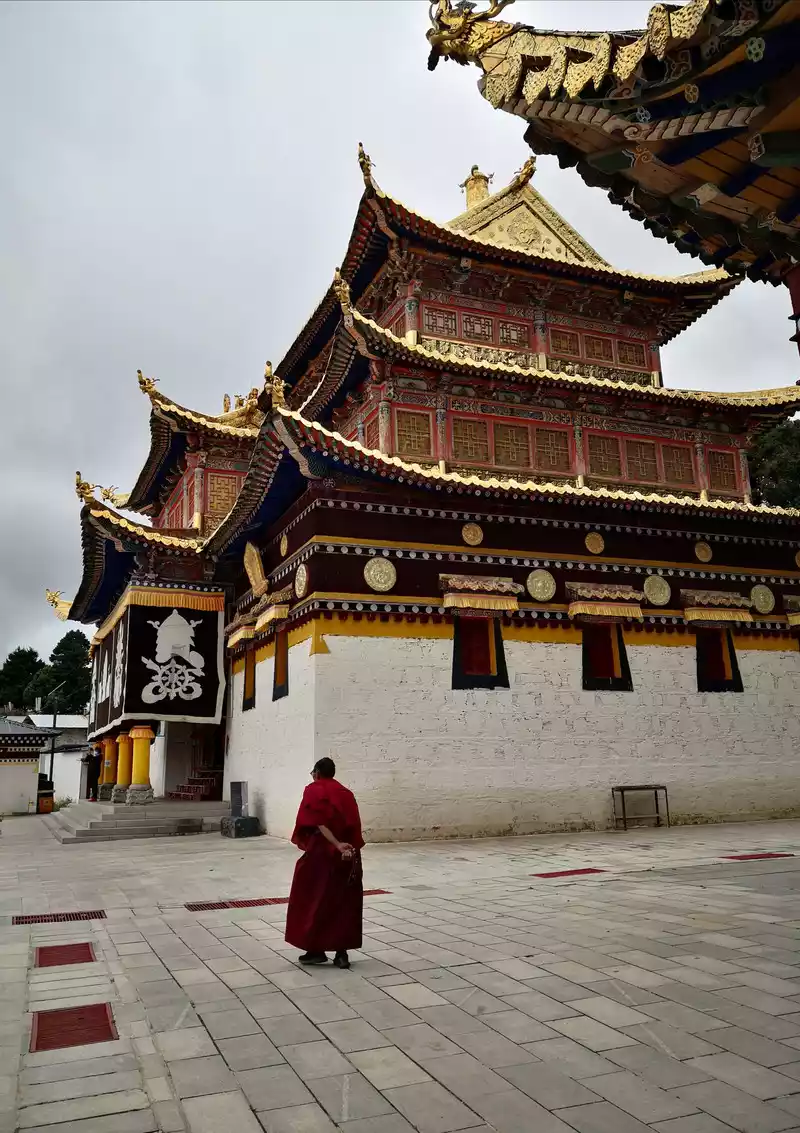 There is a Baiya Temple in the Baiya Stone Scenic Area, and when I walked to the temple, there happened to be a lama playing the trombone on the top of the main hall, and the trumpet sound was long and mysterious, like an invisible rope pulling my feet. I want to take a picture but don't dare to be too obvious, press the shutter from a distance, do you see the lama on the roof?