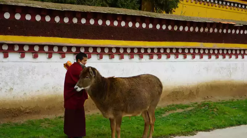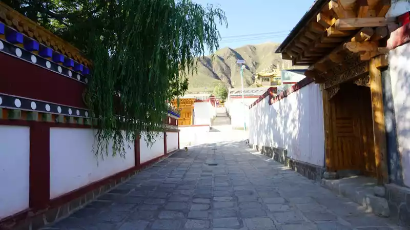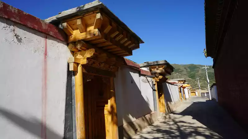 courtyards where the lamas live are neatly arranged, with white walls and wooden doors, clean and orderly.