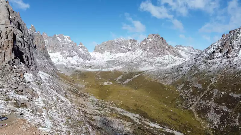The weather finally cleared up, and we set off to Lianbao Yeze, which stands between the three counties of Aba, Jiuzhi and Banma, like a huge stone castle rising on the plateau, during which strange peaks and rocks, glacier ruins and snow-capped mountains and lakes are a fairyland of the demon world.