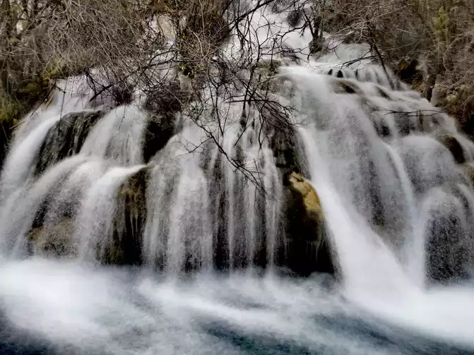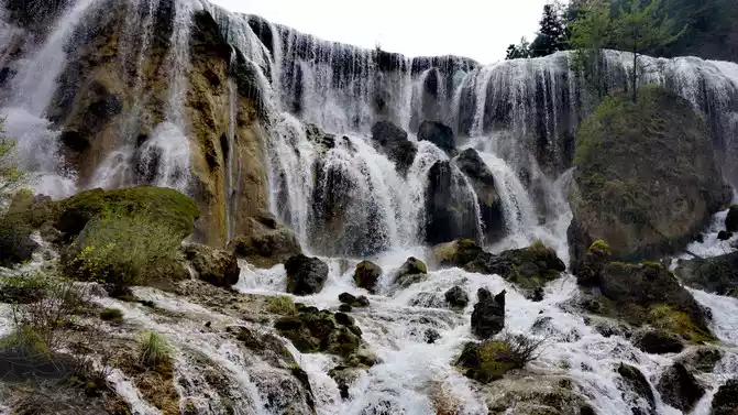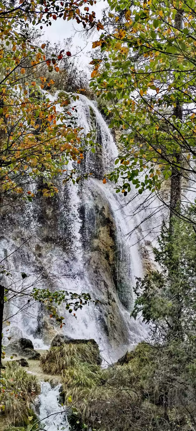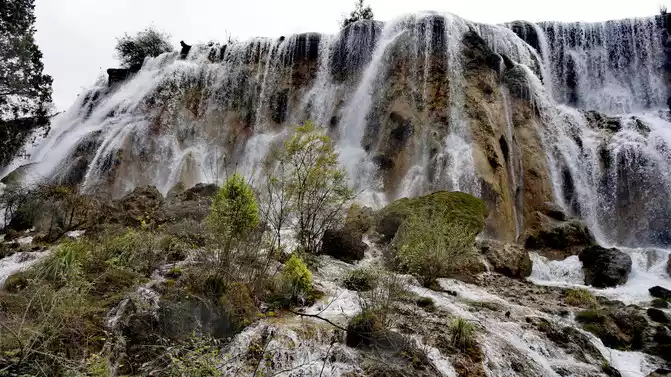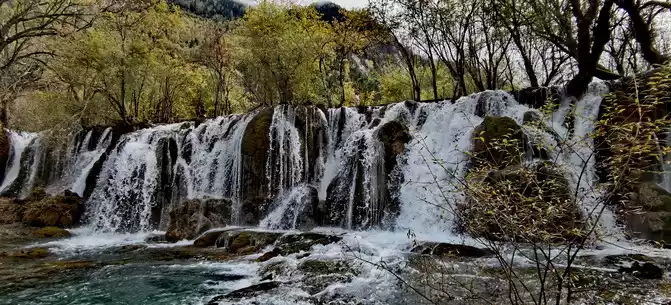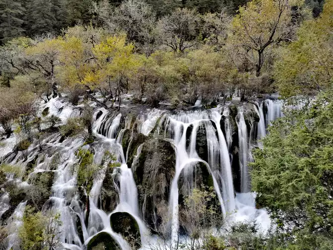 Shuzheng Waterfall is the smallest of the four major waterfalls in Jiuzhaigou.