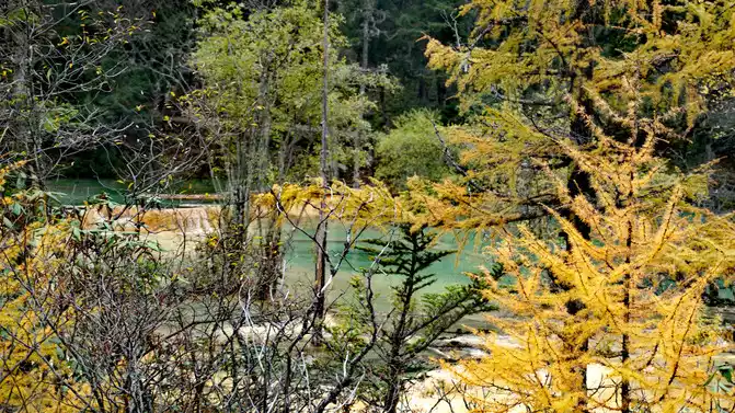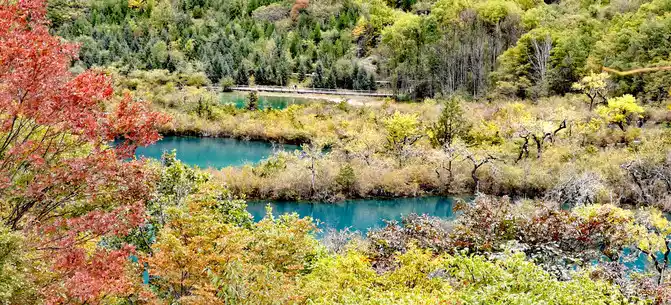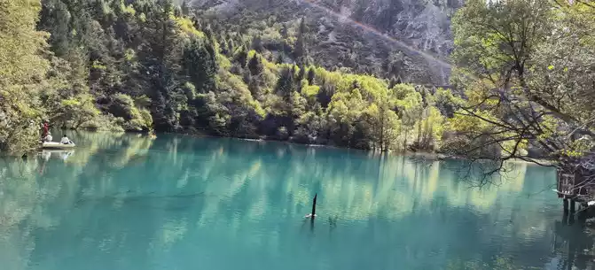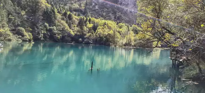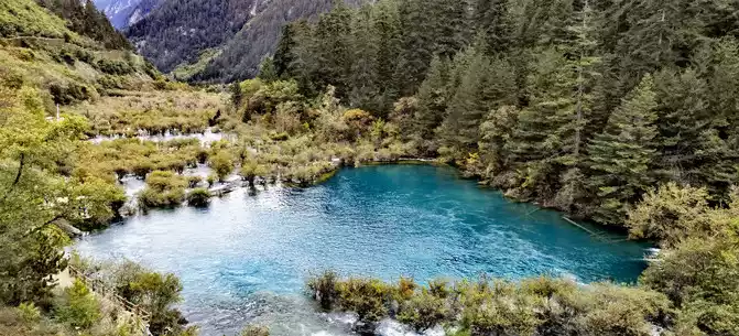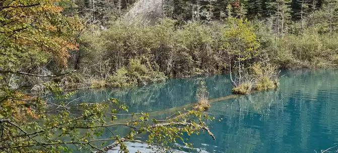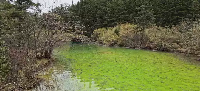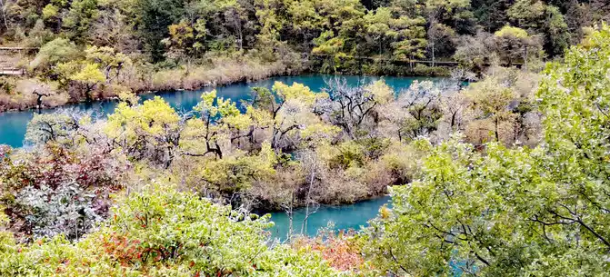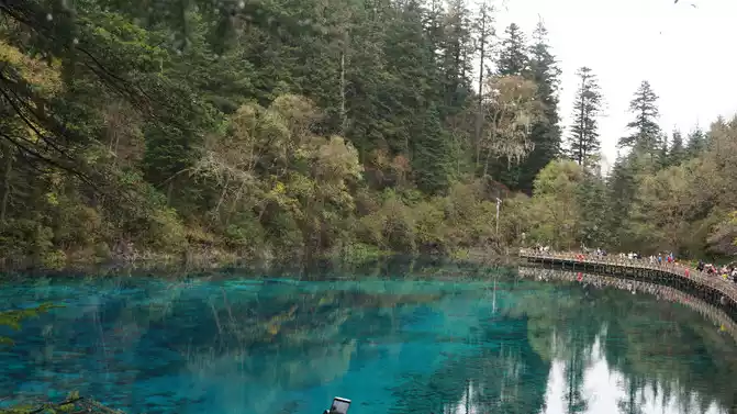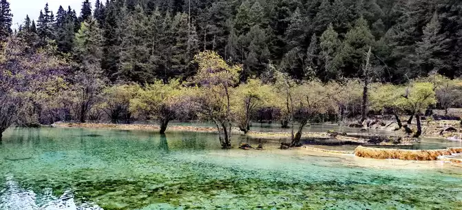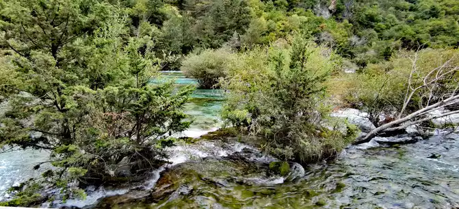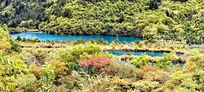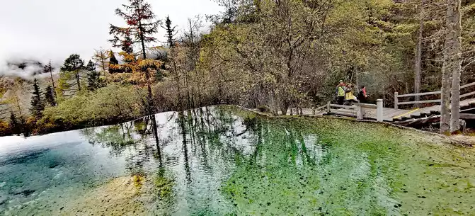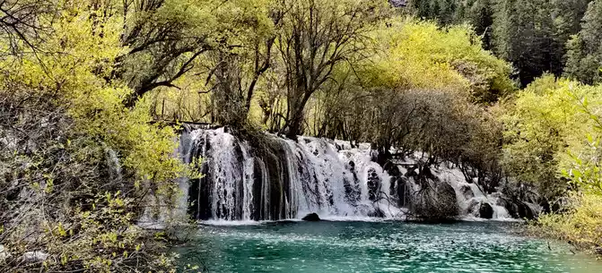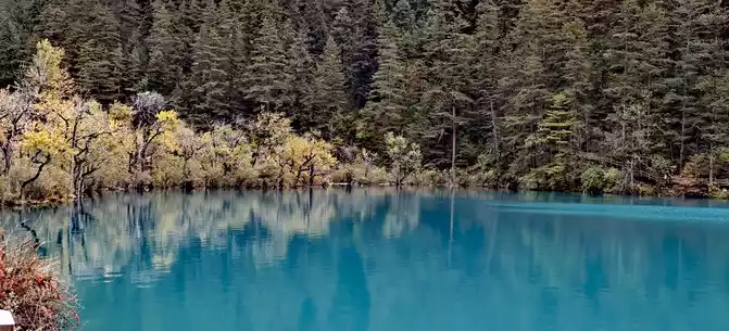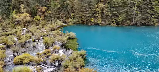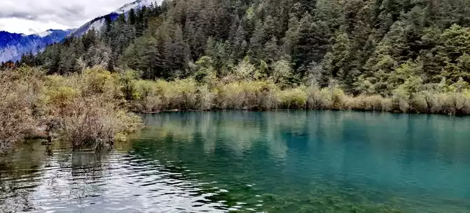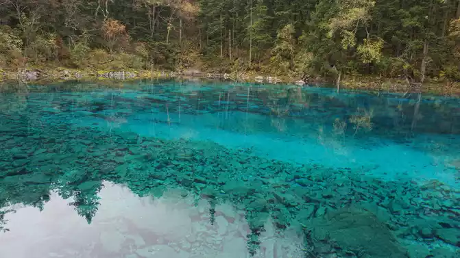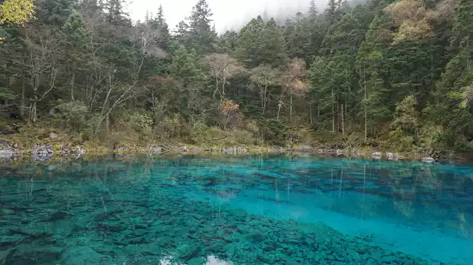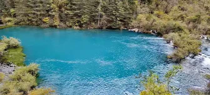 The colorful pool is hidden in the dense forest like a huge sapphire, and it is the smallest and most gorgeous pool in Jiuzhaigou. 1 km down from Changhai is the colorful pool. Photos really can't record the brilliant colors that the water surface of the colorful pool should have.