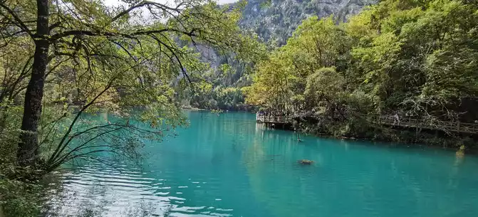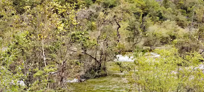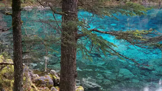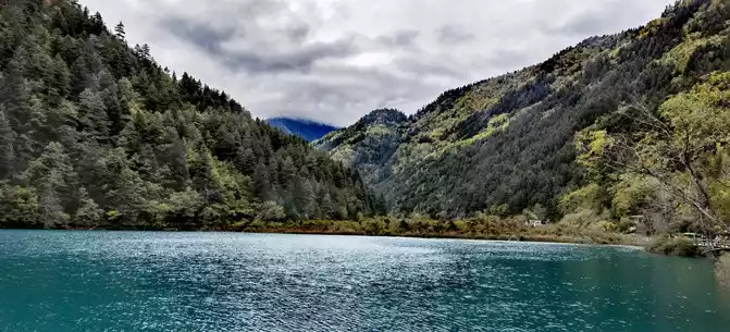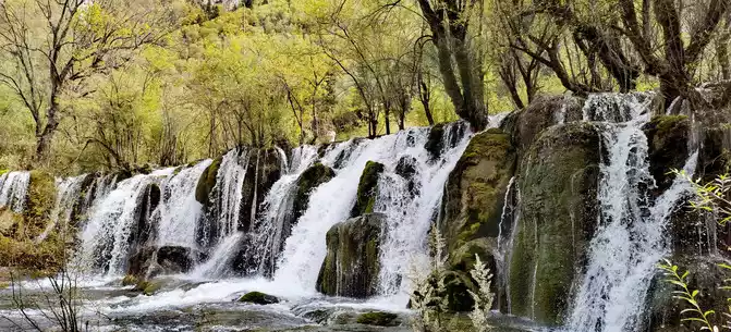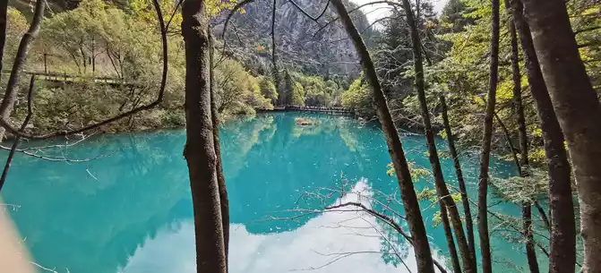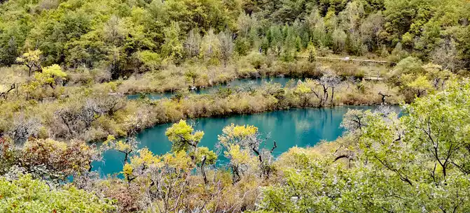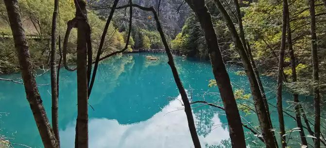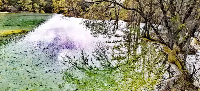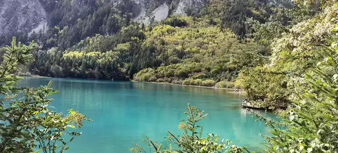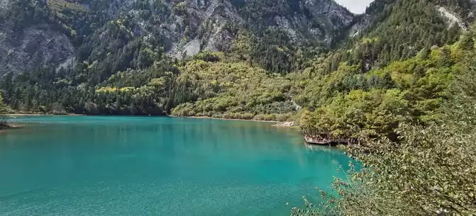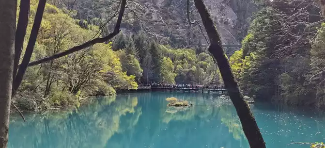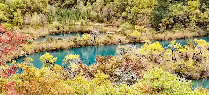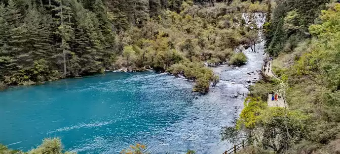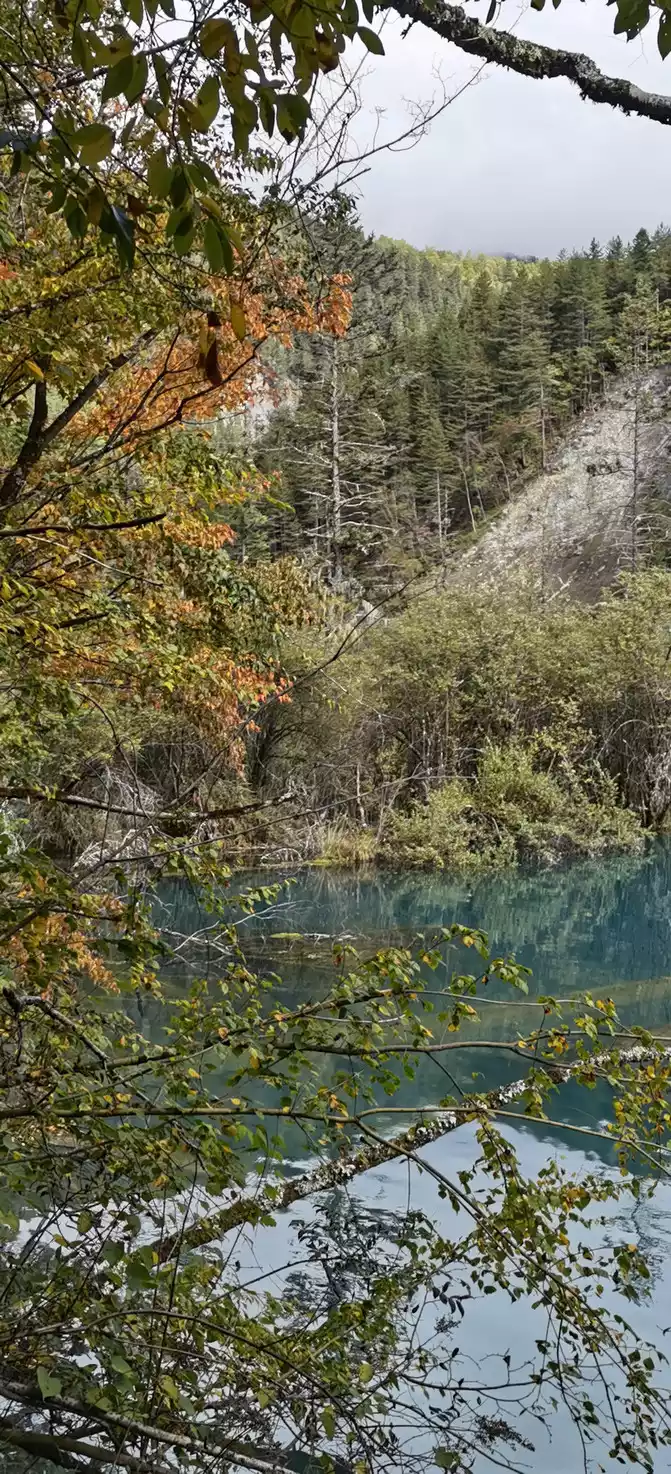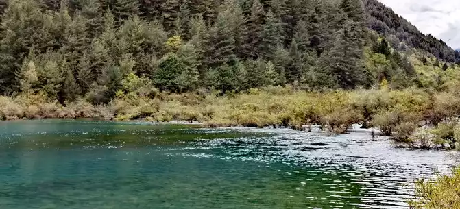 The colorful pool is hidden in the dense forest like a huge sapphire, and it is the smallest and most gorgeous pool in Jiuzhaigou. 1 km down from Changhai is the colorful pool. Photos really can't record the brilliant colors that the water surface of the colorful pool should have.