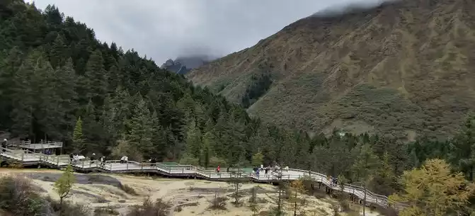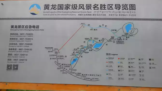 Day 4: A good night's sleep, 5:20 with breakfast and departure to Huanglong. Huanglong is famous for the "four wonders" of colorful ponds, snow-capped mountains, canyons and forests, plus beach streams, ancient temples, and folk customs called "seven wonders". It is the only well-protected plateau wetland in China, 100 kilometers away from Jiuzhaigou and 1700-5588 meters above sea level.Arriving at Huanglong at 8 o'clock, Cailian Guliang bought a trekking pole, and the itinerary was to take the ropeway up and walk down. The valley tour guide said that people who have no physical strength to stand on the ropeway can walk 2.5 kilometers to the colorful pond. People who are weak and have high reactions go down the mountain to see the beautiful pool. Hearing from the tour guide that it takes 2.5 kilometers to walk from the ropeway to the colorful pool, 5 kilometers round trip, Cailian Guliang was afraid that her knees would not be able to stand it, so she decided not to go to the colorful pool, she first went down slowly and waited for me at the Zhengyan Pool. I had to climb the colorful pool alone. Huanglong Scenic Area is very simple, just follow the plank road, basically you won't go wrong, stand on the ropeway, climb another 2.5 kilometers of mountain, and you will reach the colorful pool. The colorful pool is 3,576 meters above sea level, which is the highest point of the Huanglong scenic spot, and is located at the top of the Huanglong calcified pool group, with a total of 693 calcium pools, like colorful pearls embedded in the primeval forest, known as the "Yao Pool in the world". The weather is so good today, the blue sky and white clouds, the green mountains are emerald, the main peak of Minshan Mountain at an altitude of 5,588 meters stands majestically in front of you, walking by the pool, countless pieces of different sizes, colorful pools of different shapes are like watercolor boards full of various colorful pigments, blue and green, sea blue, light blue, etc., gorgeous and wonderful. It seems that the jade scattered by immortals in the mountains, treacherous and fantastic, known as the "Yellow Dragon" eyes, is the essence of Huanglonggou Scenic Area. You don't need photography skills here, it's a blockbuster to take a picture, so let's take a photo.