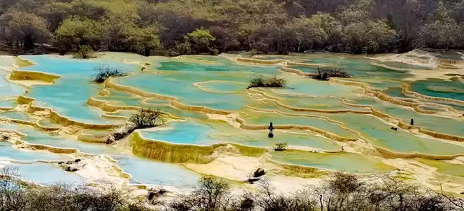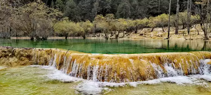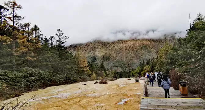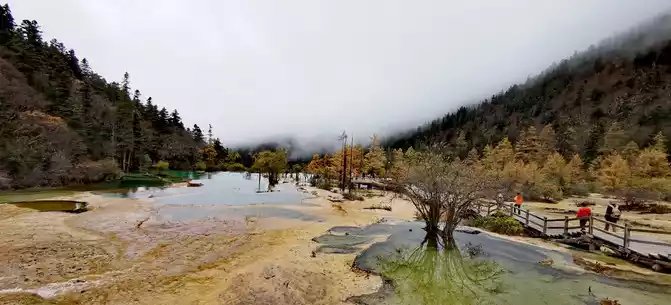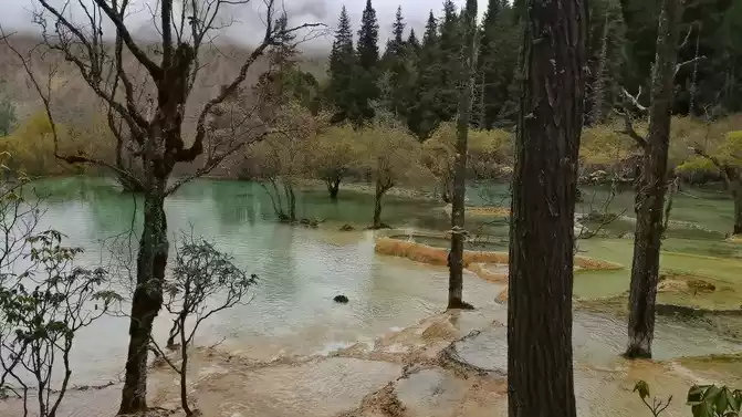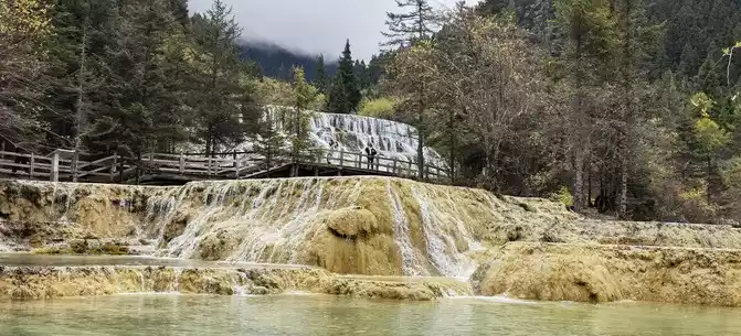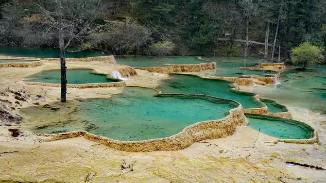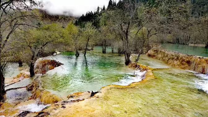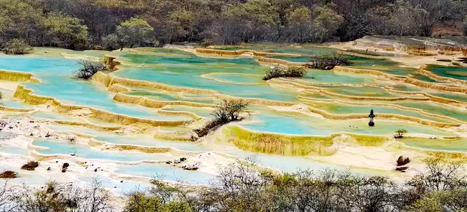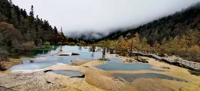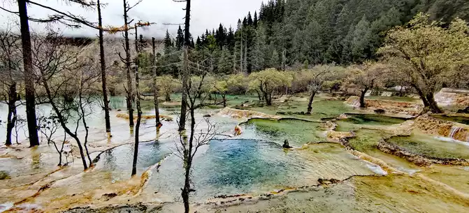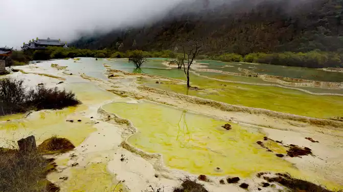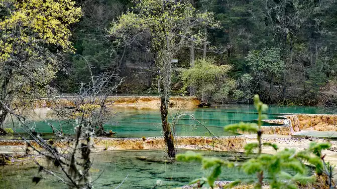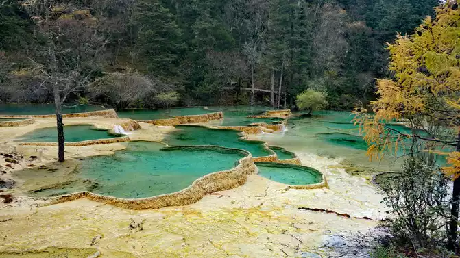 Walk 2 kilometers down the colorful pond to the beautiful pond. The Huanglong Zhengyan Pool covers an area of 20,000 square meters, consisting of 658 color pools, and is the second largest color pool group in Huanglong, with an altitude of 3,454 meters, which is the richest and most beautiful color pool group in the color pool group of Huanglong Scenic Area.