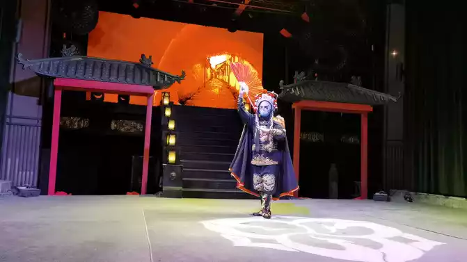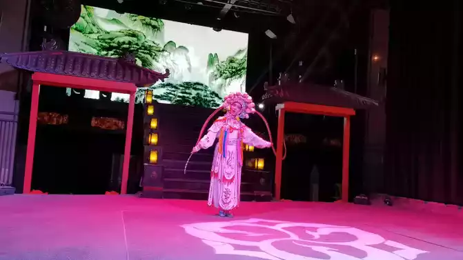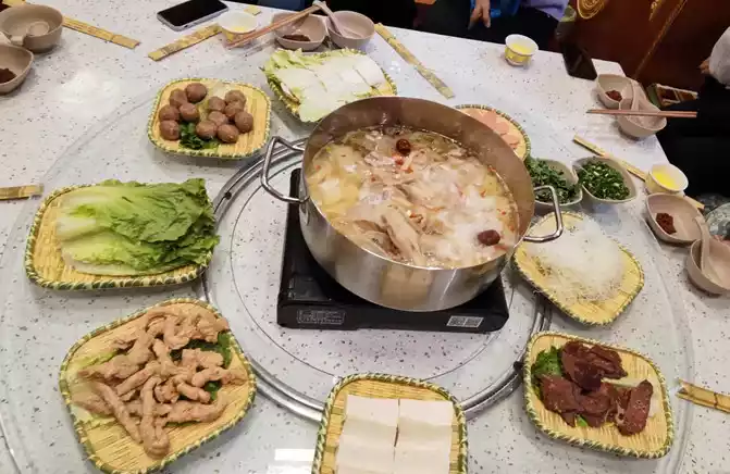 Although there are many snacks in Jinli, for the sake of our stomachs, we still unanimously decided not to eat here, just to go around and take pictures. Finally, I found a hot pot restaurant nearby for hot pot, mutton, kidney slices, fried crispy meat, various vegetables, and a bowl of noodles, Cailian Guliang also proposed to have a bottle of beer, but I gave up for my blood sugar, high blood sugar, always have to control my mouth and open my legs. We watched the performance while eating hot pot, and the performance included face changing, tea art performance, rolling skin lamp, Sichuan opera, etc. The hot pot is delicious, the performance is wonderful, I can't help but sigh, Chengdu people live so comfortably, envy and envy.