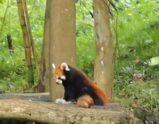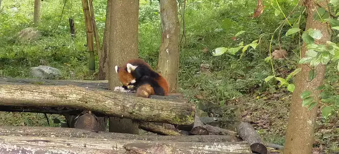 The next day, at 5:45, the car came to the hotel to pick us up and take a big bar, and two people in the same hotel were late, and the driver called to ask if they could come down in a minute, and the answer was no. The driver immediately said that he couldn't wait anymore, sent them the address, and asked them to take a taxi to the meeting place by themselves. After arriving at the meeting place of the large car, it will depart on time at 7 o'clock. The beauty Otani is our tour guide. Along the way, Qiang culture, Sanxingdui culture, etc. were explained. The drive from Chengdu to Jiuzhaigou is really long, nearly 8 hours. The trip was quite hard, but fortunately, the bus seats were spacious, relatively comfortable, and there was hot water on the bus. An hour later, the car arrived at Dujiangyan Panda Paradise. Here, popular science knows that red pandas are not giant panda cubs.