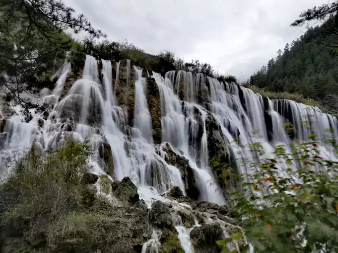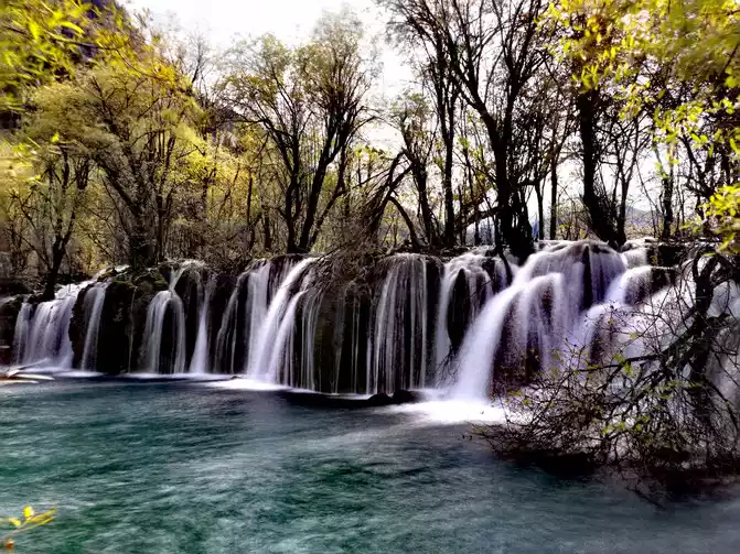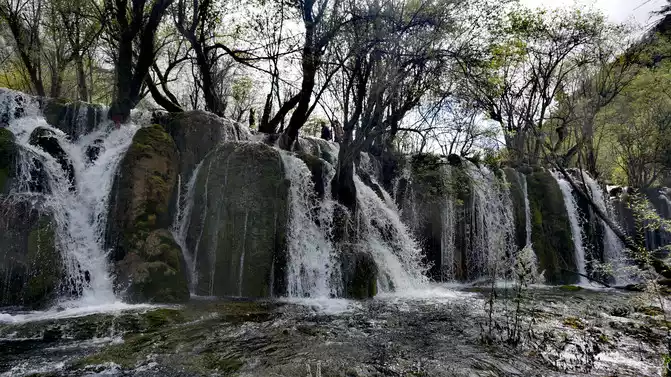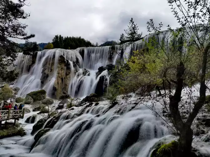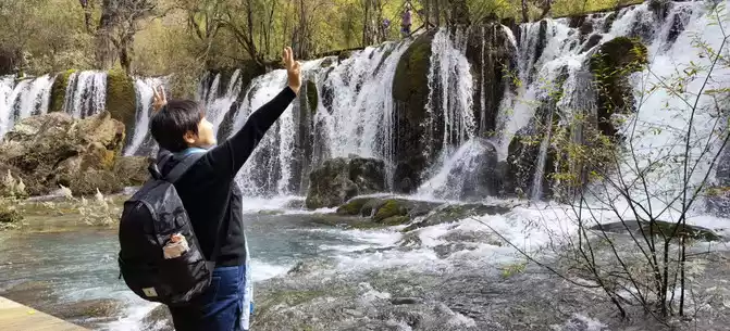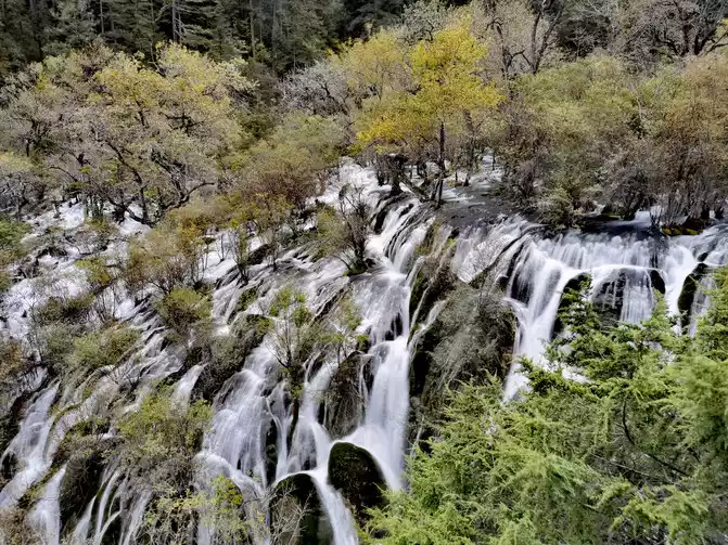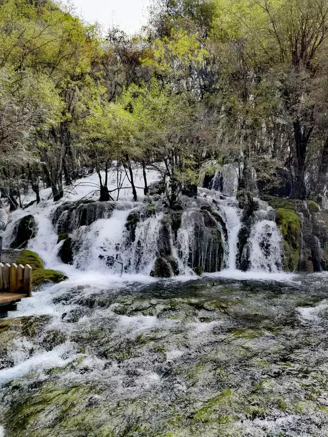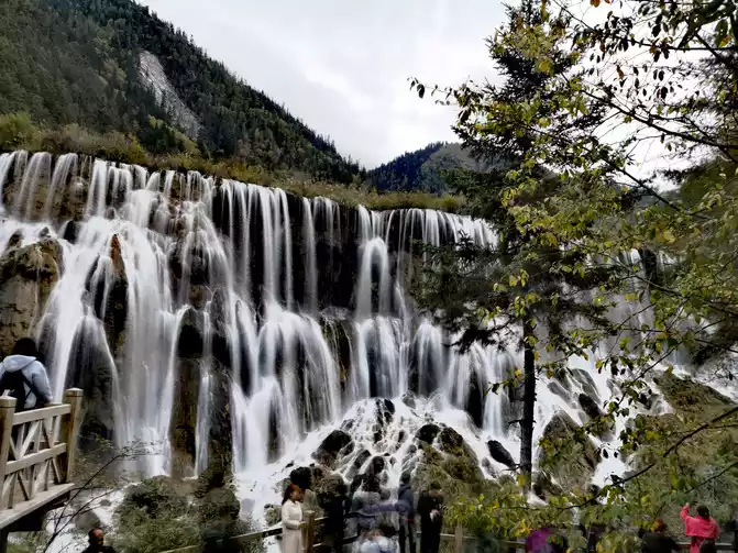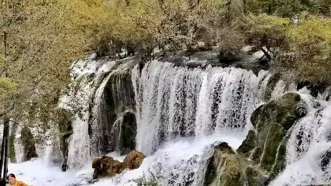 Nozhilang Waterfall: Jiuzhaigou Nuorilang Waterfall has a drop of 20 meters and a width of 300 meters, making it the widest of many waterfalls in Jiuzhaigou. Cailian Guliang's knees hurt, and it was difficult to go down the steps, and Nuorilang Waterfall just hurriedly took a few photos from top to bottom, and did not go down to see it closely.