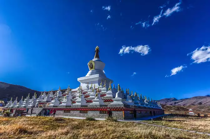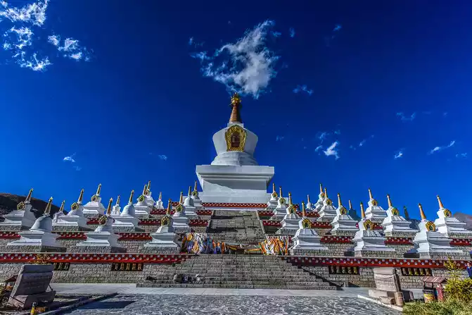 Everyone knows that Aden is the most beautiful place in Daocheng County, Ganzi Prefecture, and it is also the county's city business card and landmark! However, there is another landmark building in Daocheng County, which is the Daocheng White Pagoda, which is the Zunsheng Tower Forest in the hearts of Daocheng people. This white pagoda is the largest outdoor pagoda in the entire county of Daocheng and is an urban landmark outside the Aden Scenic Area. Up to now, it is also the largest pagoda community in Sichuan Province, showing the solemn beauty of Tibet everywhere!
