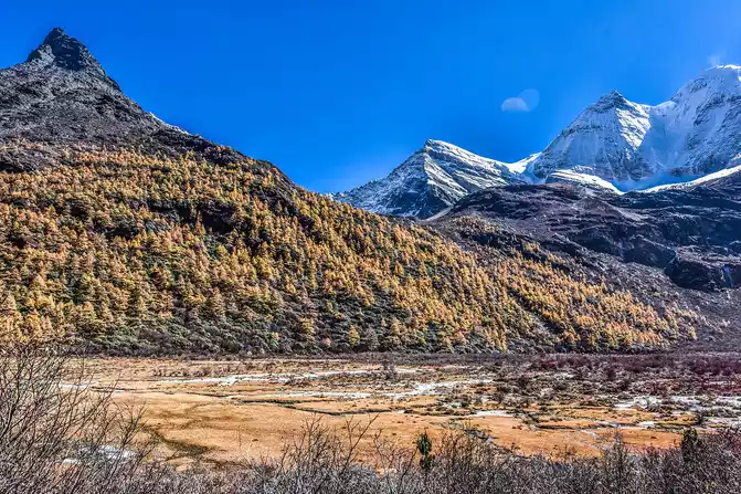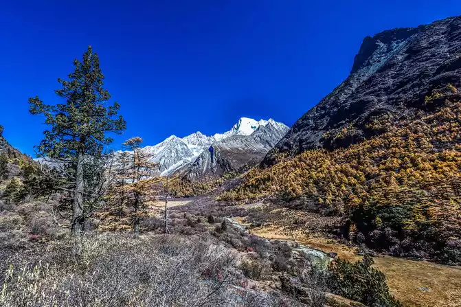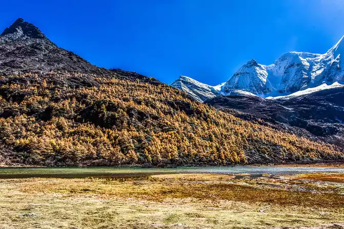 The snow-capped mountains that refuse to melt all year round have become the most shocking highlight of the Aden Scenic Area, and Aden in late autumn is so beautiful, and the colorful colors render the mystery of this Shangri-La. The snow-capped mountain community and the green and yellow fir trees form the beautiful scenery of the Alpine snow-capped mountains. However, many people pay attention to the snow-capped mountains, and few people appreciate the meadows of Aden, which is a scenery that cannot be ignored in Daocheng Aden!