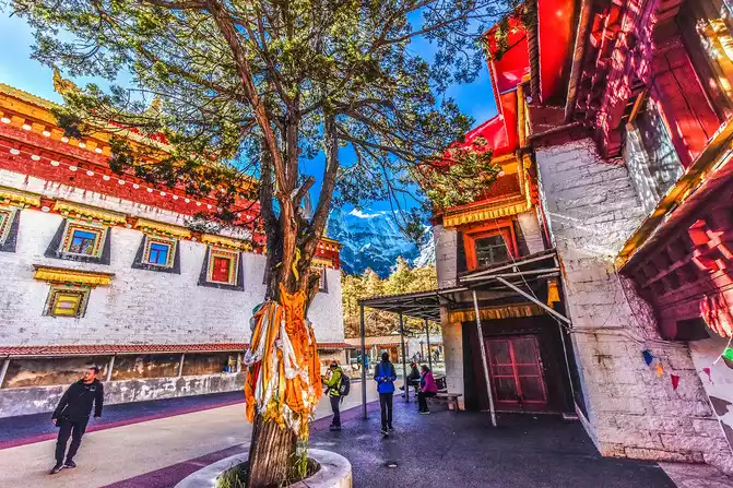 The area of the ancient temple is not very large, but the angle is very good. You can see three snow-capped mountains in the courtyard, they are all the embodiment of religious culture, and you must enter this ancient temple to feel the humanistic beliefs that belong to nature.