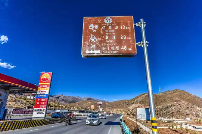 Zunsheng Tallinn Scenic Area is located less than 2 kilometers away from Daocheng County, which is a must-pass for Daocheng County to Aden Airport. Within 50 kilometers, you can reach Aden Natural Scenic Area, Red Grassland Scenic Area and Sangdui Scenic Area, and there are many street signs on the road.