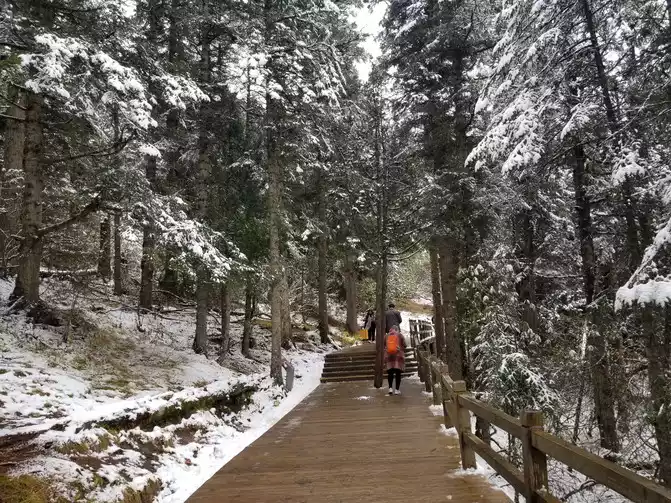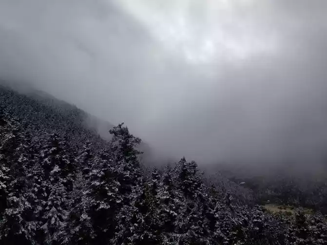 There is a cable car up the mountain, about 6 people in one car. As the altitude increases, the white frost on the branches and the top of the mountain turns into snow, get off the cable car, look at the snow on the top of the mountain~~~ It's really beautiful, it's the right time to come!! The primeval forest is covered in silver, green smoke is drifting, as if you have come to a paradise, plus there are not many people on weekdays, and there will be no crowds when taking pictures~~ Ba Shi is very !!