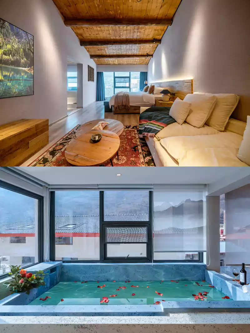 π° Price | From 758 (including breakfast and soup pool) Hidden in the local Tibetan village, free pick-up and drop-off to the scenic spot is provided.