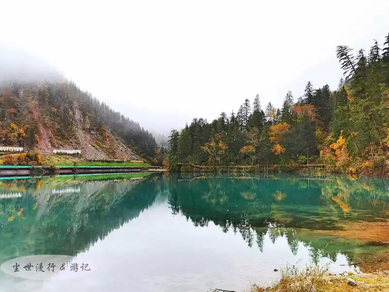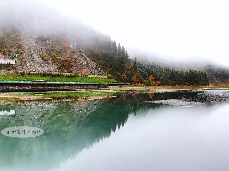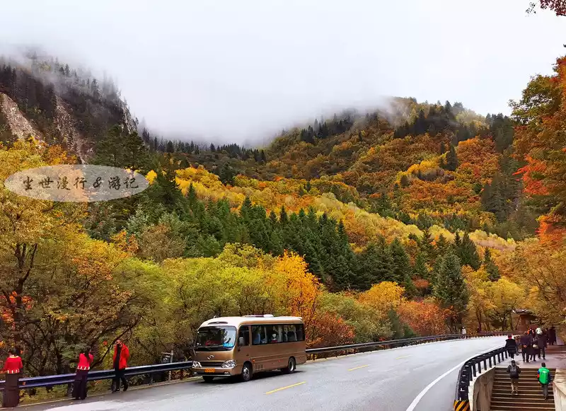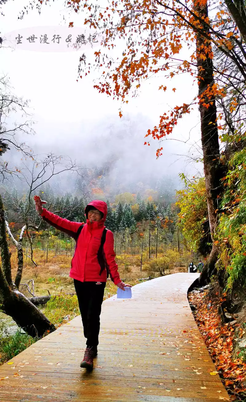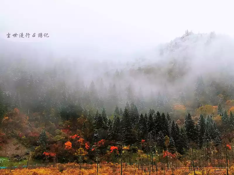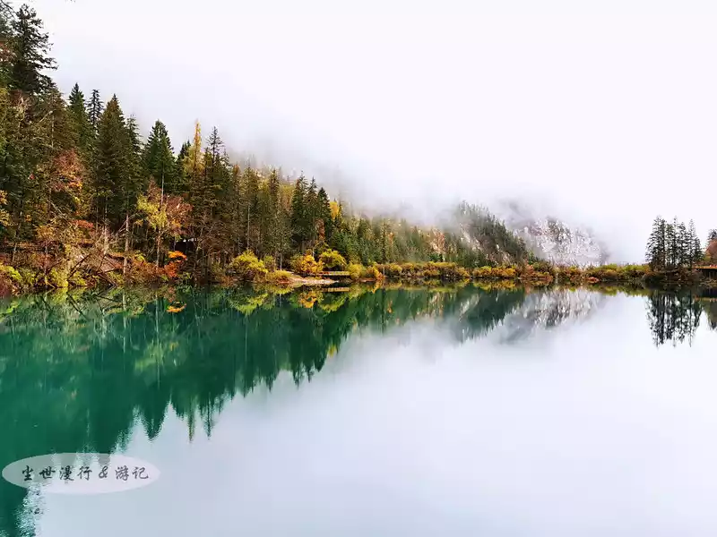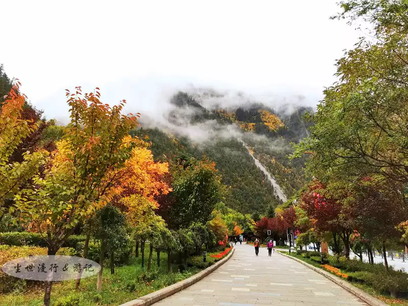 After breakfast at 7 a.m. the next morning, it takes 5 minutes to drive to the parking lot of Jiuzhaigou Scenic Area. Next to the walking path, the brilliant colors of golden autumn come to your face, and the clouds and mist drift on the colorful forests of the mountains - hehe, this is telling me that the most brilliant season in Jiuzhaigou is today!