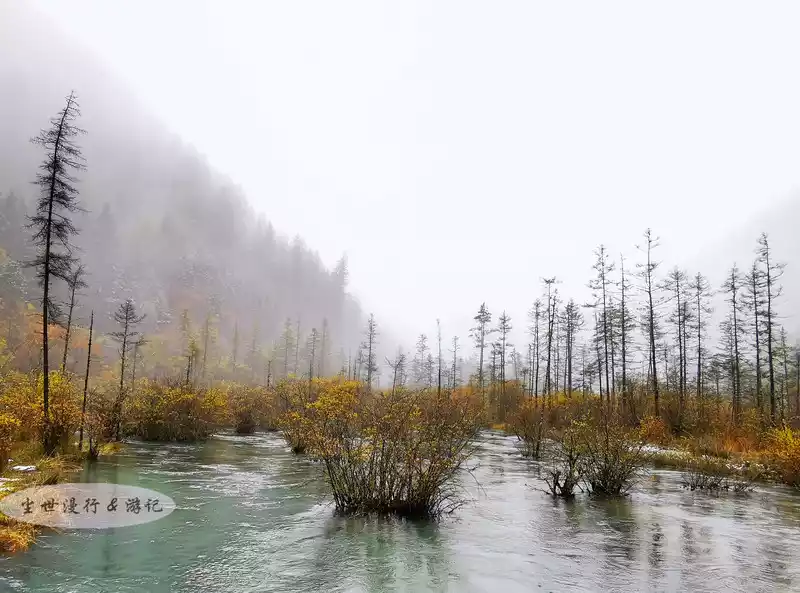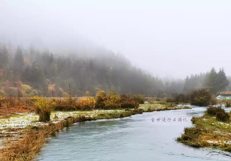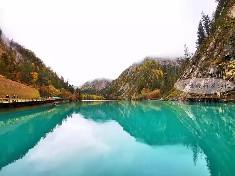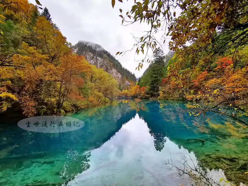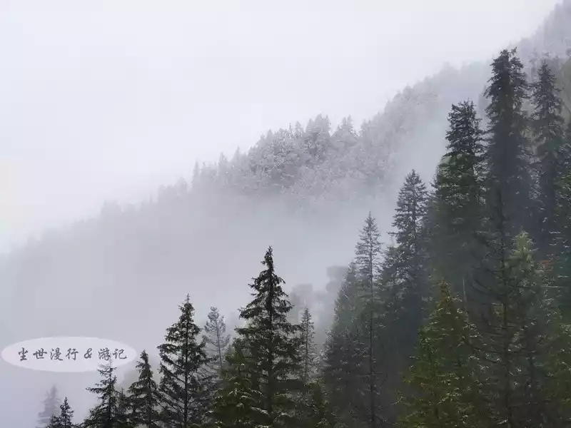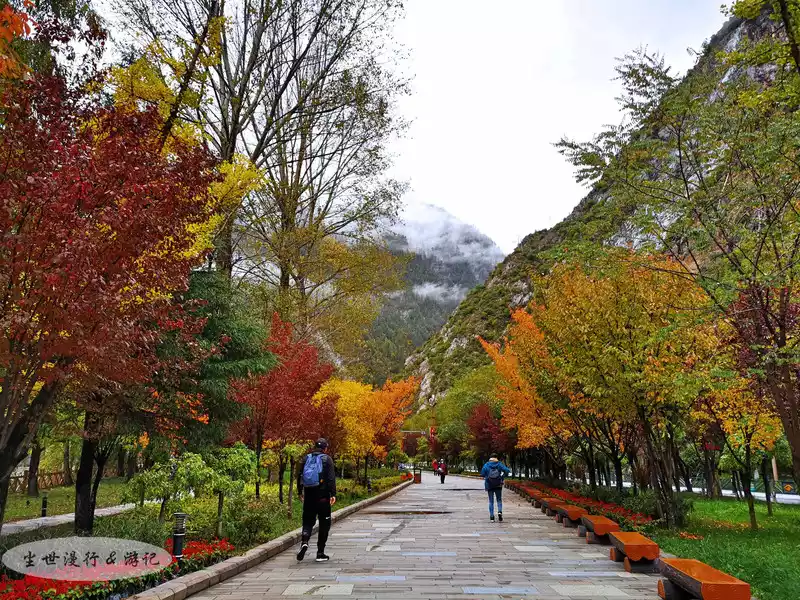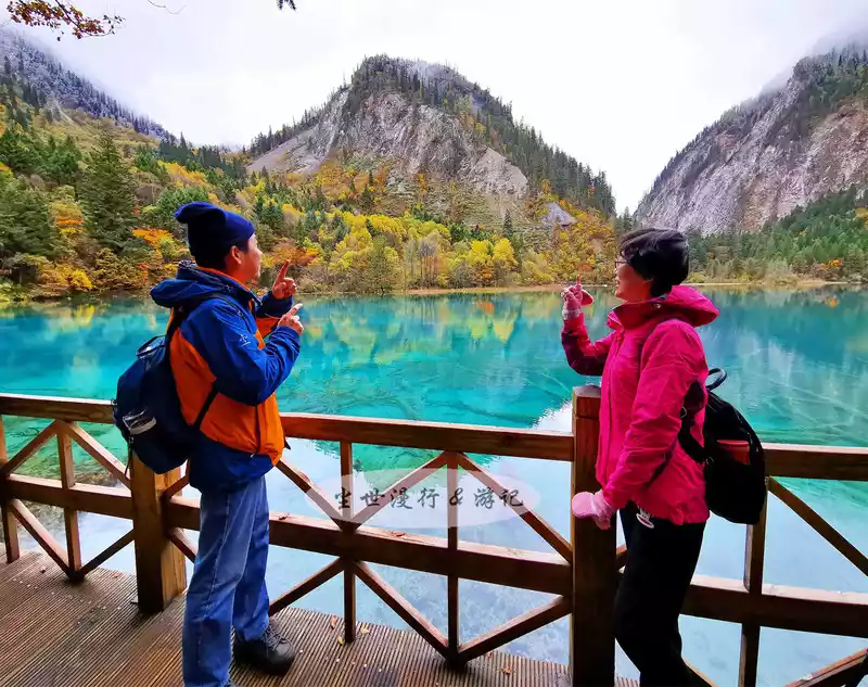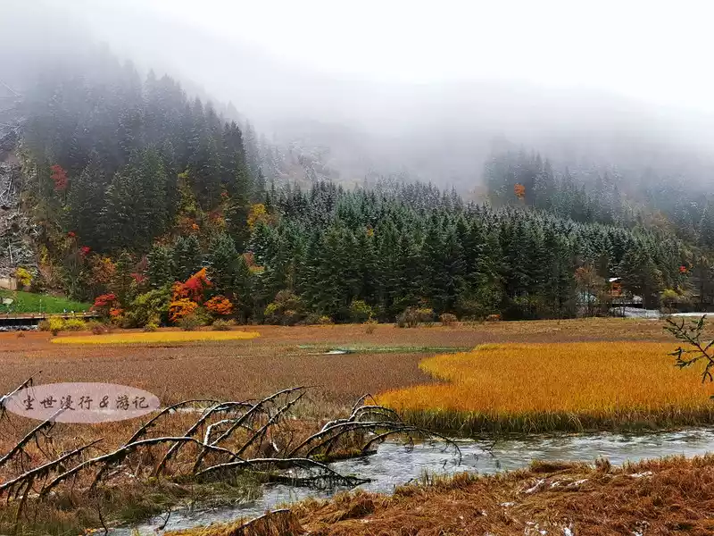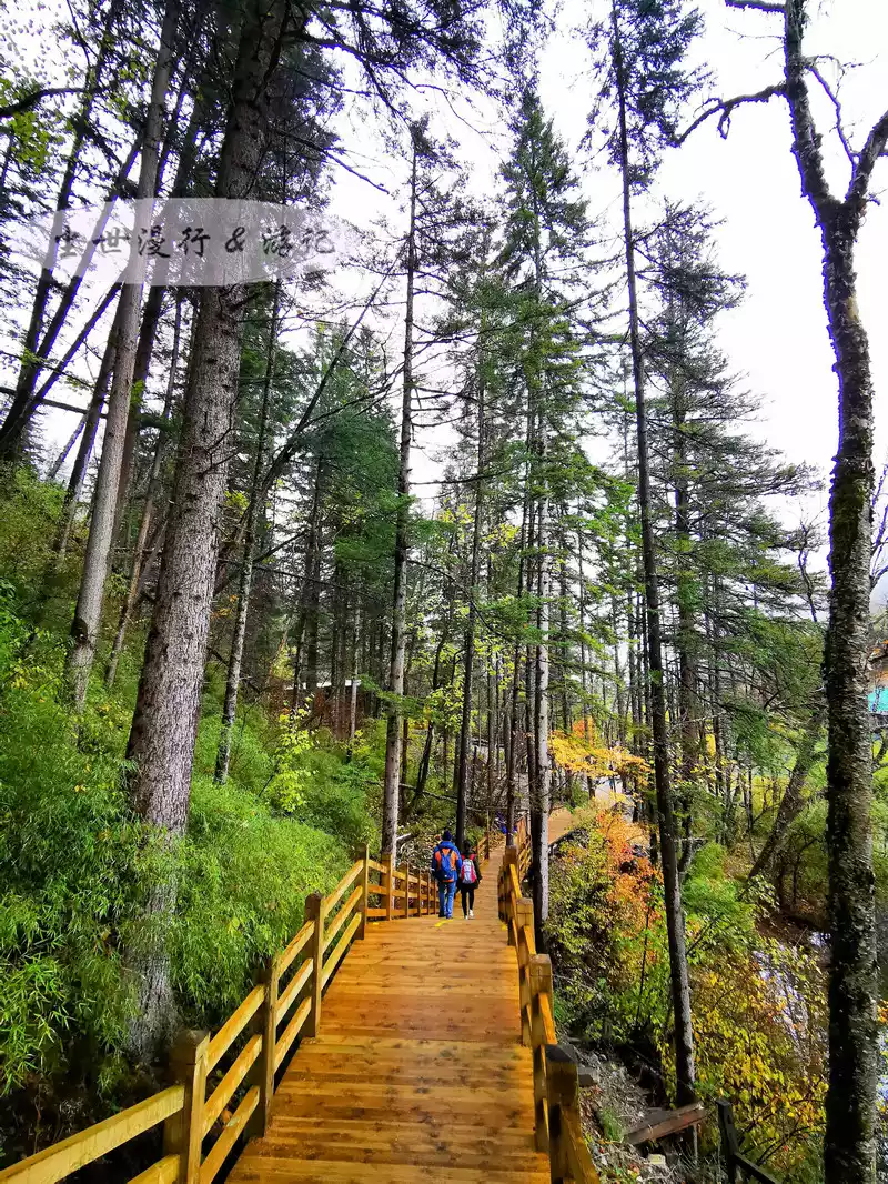 After breakfast at 7 a.m. the next morning, it takes 5 minutes to drive to the parking lot of Jiuzhaigou Scenic Area. Next to the walking path, the brilliant colors of golden autumn come to your face, and the clouds and mist drift on the colorful forests of the mountains - hehe, this is telling me that the most brilliant season in Jiuzhaigou is today!