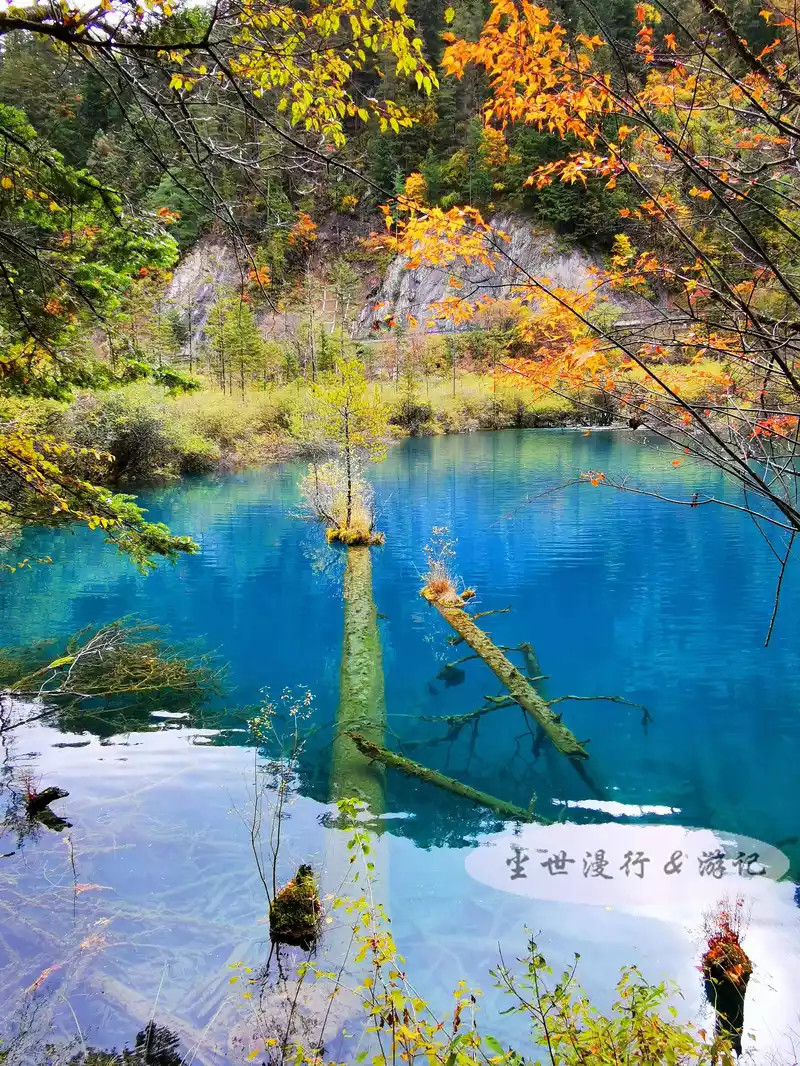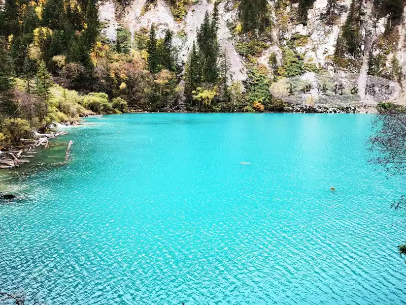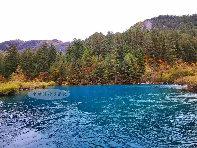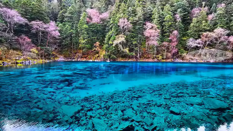 The edges and corners of the gravel at the bottom of the colorful pool, The texture of the rock face is distinct one by one, and the pool water is blue and royal green, clear and translucent. The exquisite colorful pool is therefore called the Eye of Jiuzhai.