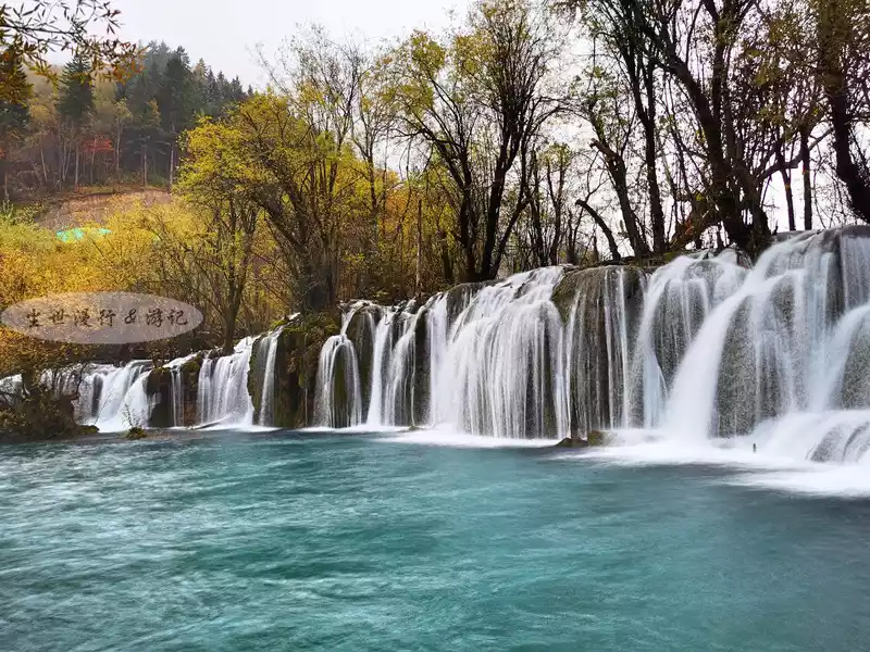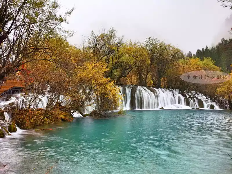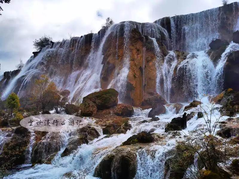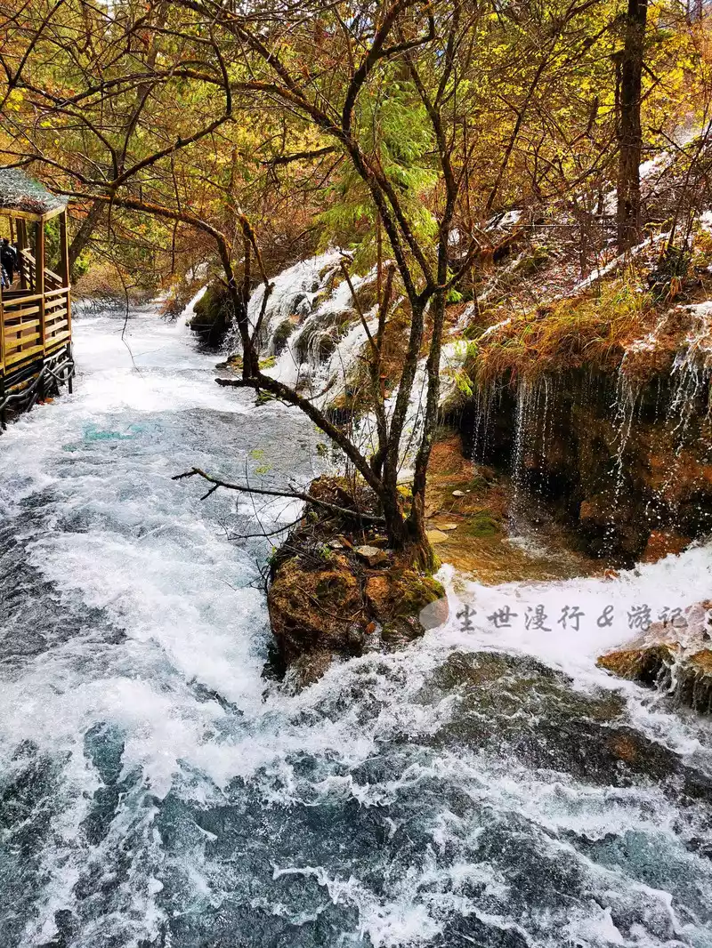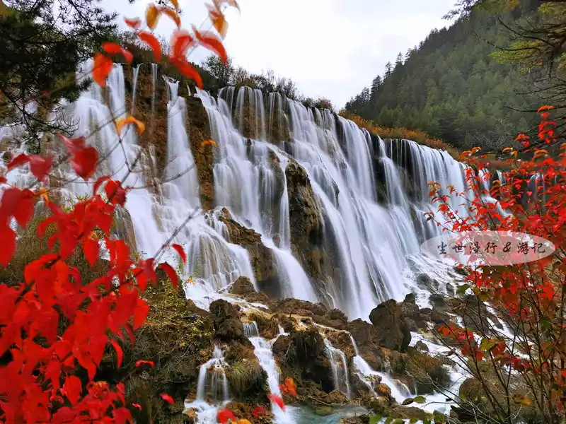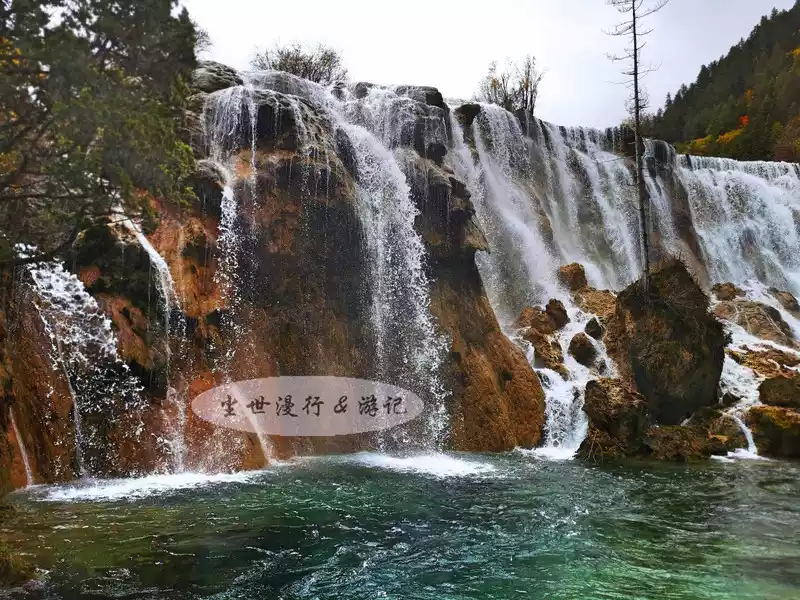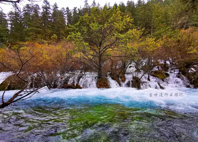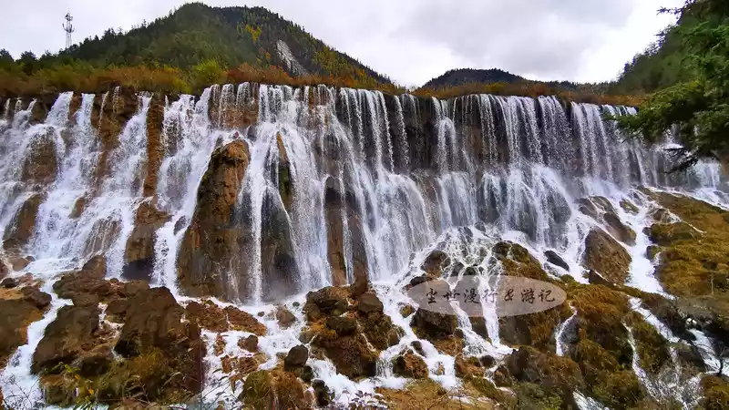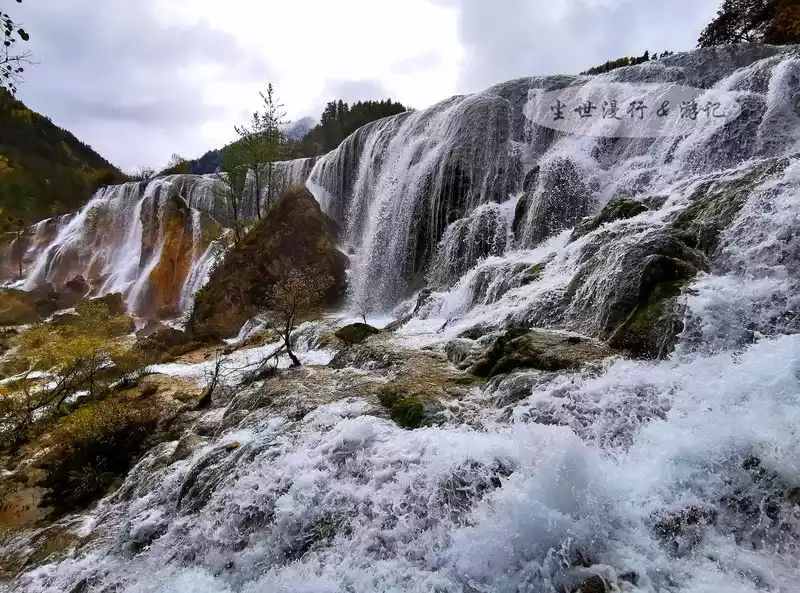 The water rushing from the pearl beach rolls down the edge of the cliff, forming a wide crescent-shaped waterfall. The waterfall fell to the bottom of the valley, emitting a deafening roar and forming a raging torrent. This rapids is the most beautiful, the most rapid, and the loudest sound among all the rapids in Jiuzhaigou.