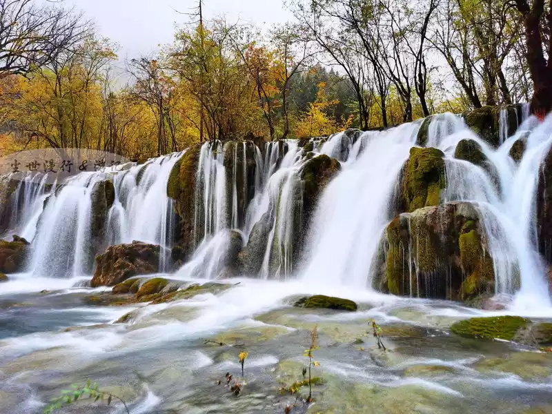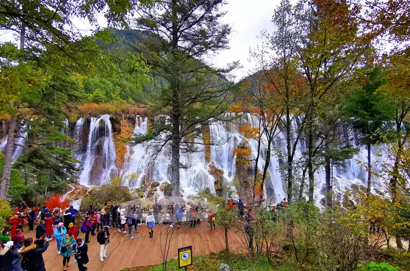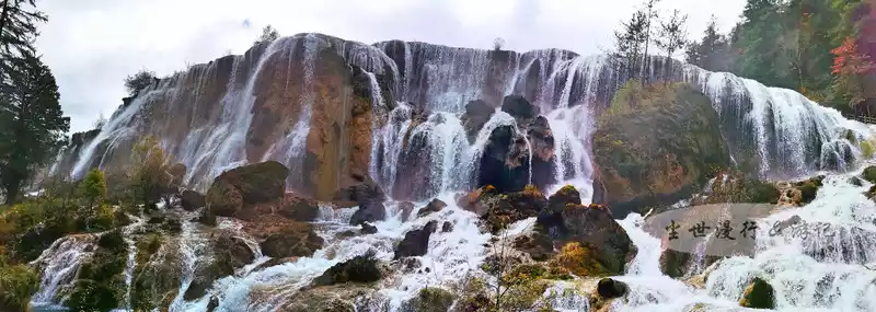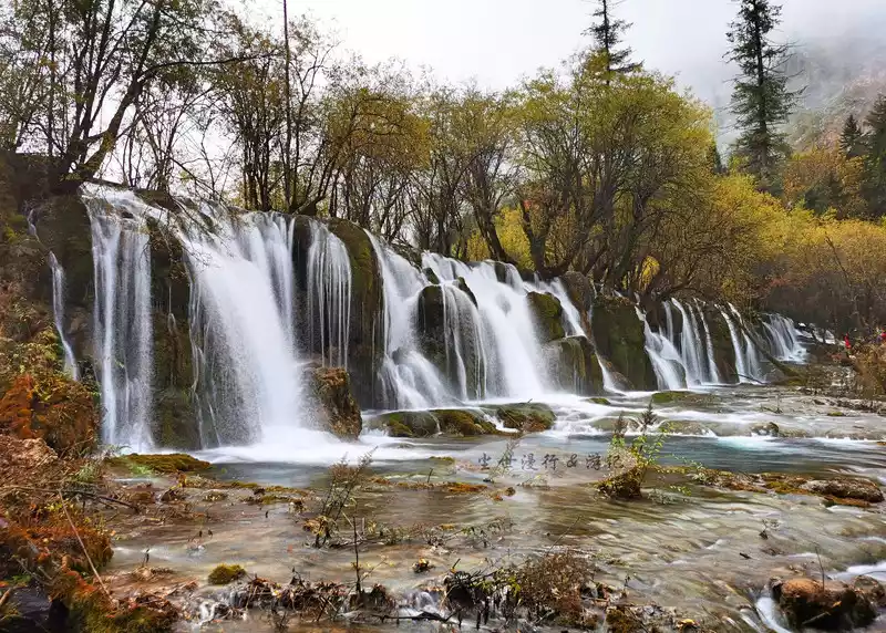 Pearl Beach Waterfall is 2,443 meters above sea level, 21 meters high and 162 meters wide, with a maximum drop of 40 meters, which is a typical combined landscape in Jiuzhaigou. The content of negative oxygen ions here is extremely rich, hundreds of times higher than that of the plain area, and is known as the "natural oxygen bar".