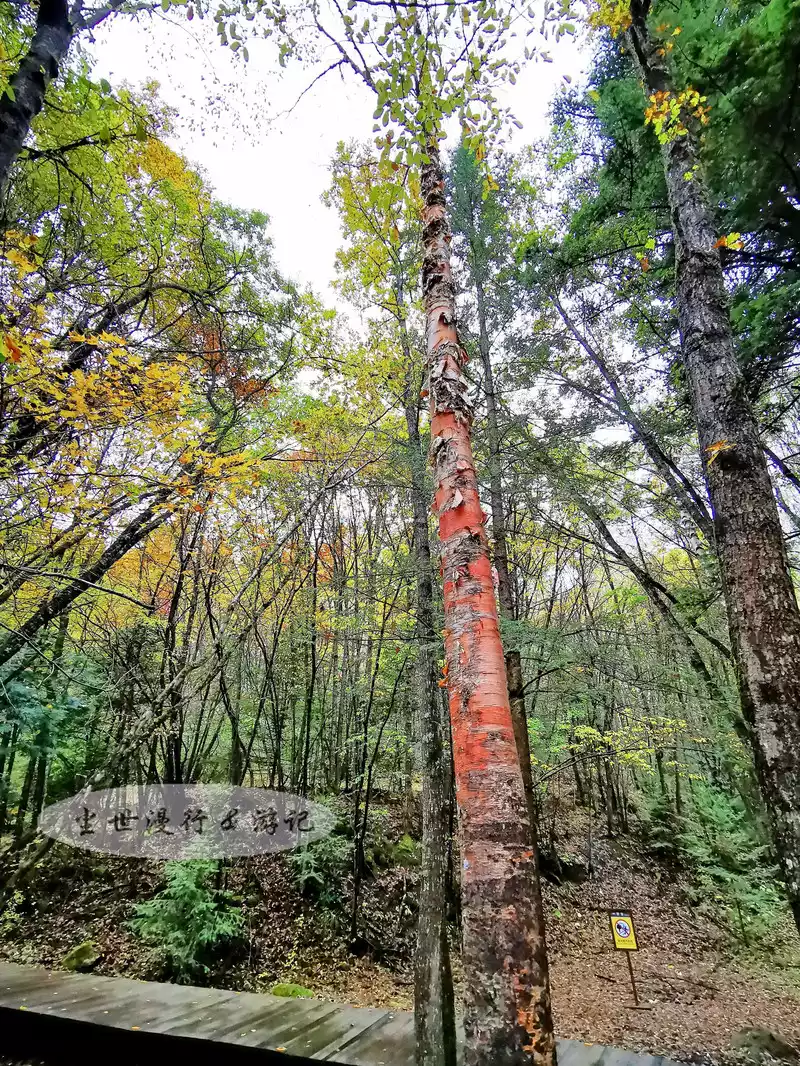 Red birch trees next to the plank road. Red birch trees are light-loving and cold-resistant, with trunks up to 30 meters high, and are mainly distributed in Sichuan, Yunnan, Qinghai, Gansu, Hubei, Shaanxi and other provinces and regions at an altitude of 1000 meters to 3400 meters. Red birch wood has a hard texture, fine structure, and beautiful patterns, and can be used to make furniture or boards, and the bark can be used as a hat or packaging material.